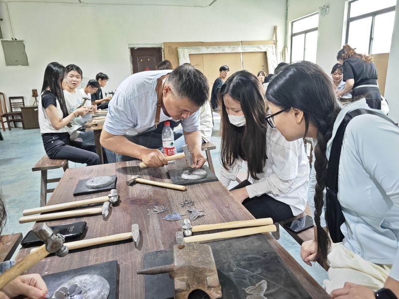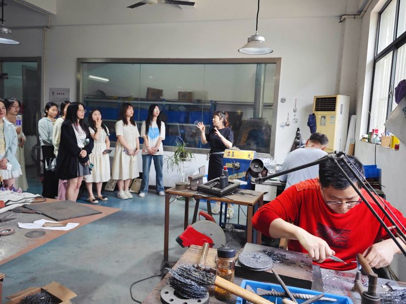 在创意园工作人员的介绍下,同学们参观了铁画精品博物馆,了解了铁画的历史发展和艺术特点,并详细观摩了铁画制作的各道工序和工艺流程。随后,在专业铁画师傅的指导下,开始铁画制作体验。他们分组合作,从设计图案,到剪裁、锻打,每一个步骤都亲自动手,体验了从构思到成品的全过程。虽然过程中遇到了种种挑战,但同学们都表现出了极高的热情和耐心,最终完成了各自的铁画作品。活动最后,同学们将自己的作品进行了展示,并分享了参与活动的心得体会。他们表示,通过这次活动,不仅学到了铁画的制作技巧,更深刻体会到了劳动的价值和乐趣,以及传统文化的魅力。