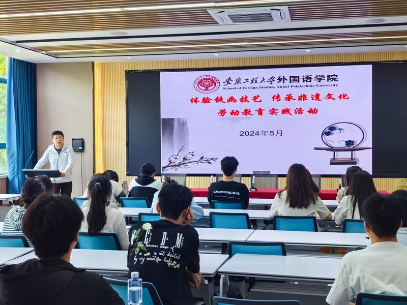 为深入贯彻学校“三全六专”育人实践要求,引导同学以劳树德、以劳强体、以劳育美,5月10日下午,在中国铁画创意园,外国语学院团委、铁画翻译与国际传播研究中心和创新创业中心共同举办“匠心传承、劳动育人、语言+艺术——劳动教育实践活动”。活动面向22级本科生,英语系主任苏涛主持了启动仪式,辅导员陈小庆一同参加活动。