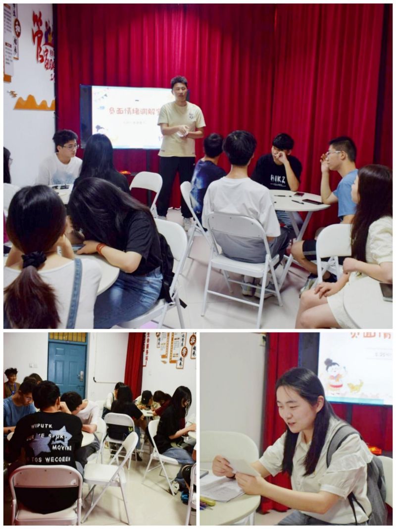 活动现场,活动负责人以“负面情绪调节”为主题,为同学们传授心理健康知识和处理不同情绪的技巧。同时,以书写的方式,引导同学们进一步了解自己,正确认识负面情绪。活动正式开始,到场同学纷纷在白纸上写下当前自身面临的烦恼。如“无法与室友友好相处、在大学期间没有明确的目标、与家人存在矛盾、期末复习压力大”等生活、学习、工作上的烦恼。徐博围绕“期末复习压力大”的烦恼指出,在期末复习阶段应该摆正心态,有计划的复习,复习要早做打算,做好规划,拥有阶段性小目标才能及时化解。高天宇针对“与家人存在矛盾”的烦恼问题表示,时代快速发展,青年大学生与家人存在沟通障碍是正常现象,每个时代都有其特殊性,应该与家人相互理解,多换位思考,利用所学耐心与家人沟通,要珍惜来自最亲近人员的关怀和爱护。到场的师生还围绕其他烦恼问题,一一进行了分析和讨论,及时化解同学们心中不良情绪。