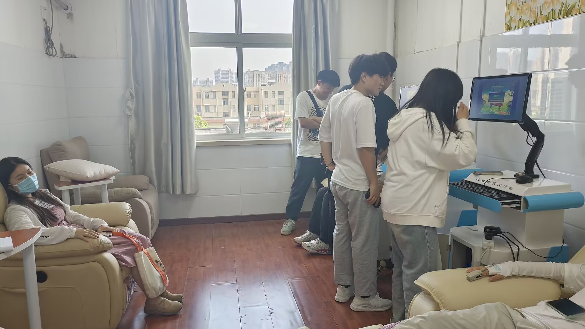 5月24日下午,学院组织部分本科生前往校心理健康教育中心沙盘活动室、音乐放松室、宣泄解压室等功能区开展体验活动。有的同学通过击打、呐喊、运动等方式,肆意释放内心的负性情绪,体验宣泄带来的舒畅感觉,为不良情绪提供一个出口,从而达到放松身心的效果;有的同学躺在特设的音乐椅子上,聆听宁静优美的音乐,通过专门的生物反馈程序和感应器的传导,目睹自己的生理参数在电脑屏幕中的展现,以此来更为直观的了解自身心情的变化,以达到调整呼吸,放松身体的目的;有的同学借助于多种多样的沙具,任意在沙盘上绘制自己心中的世界,咨询师帮助大家解读自己的无意识,从而解决面临的心理困扰。