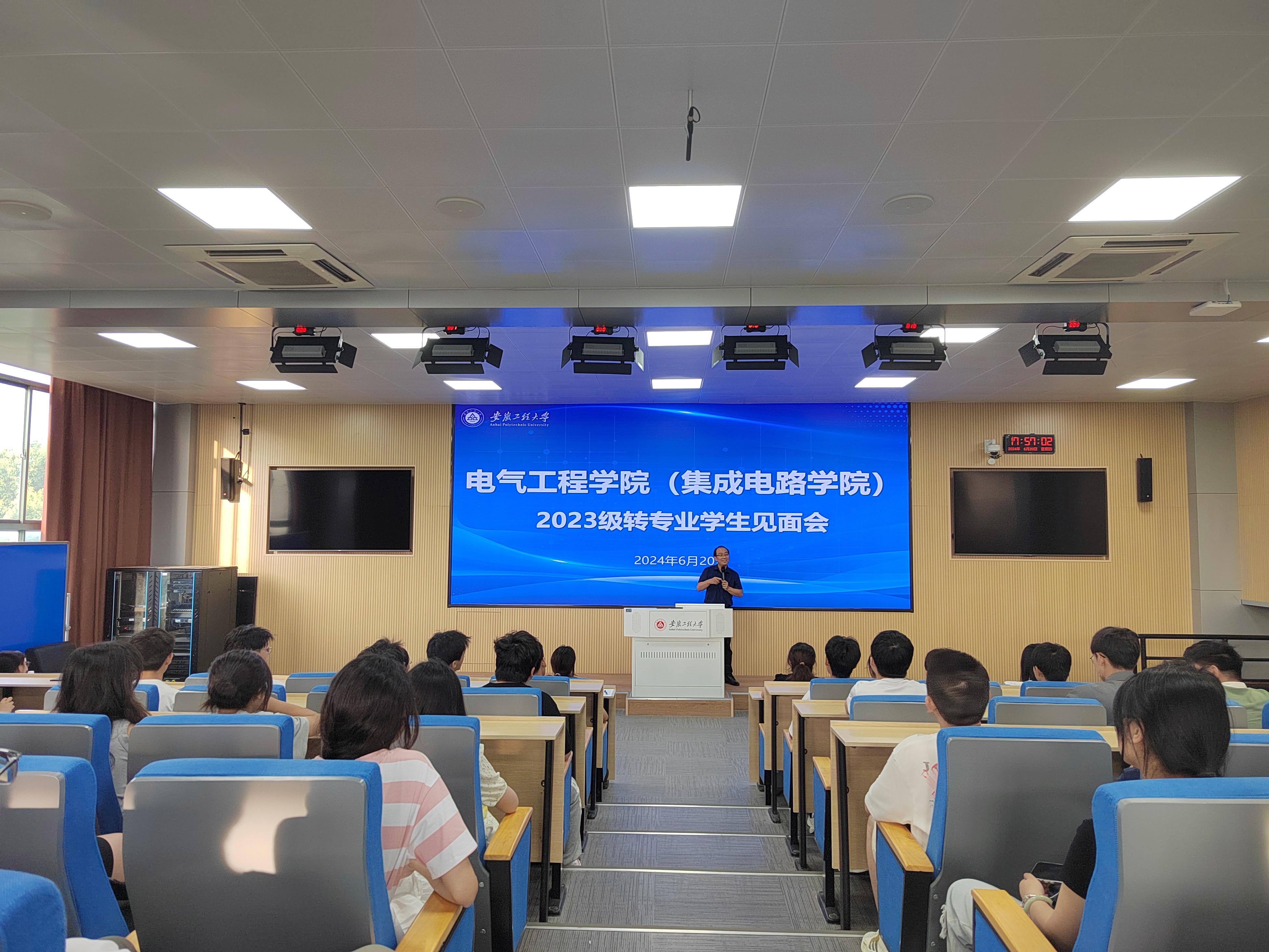 6月20日,电气工程学院(集成电路学院)在5教217教室举行2023级转专业学生见面会。学院党委书记杨会成、党委副书记迟传德、99名转入学院的新同学和全体23级辅导员参加见面会。会议由迟传德主持。