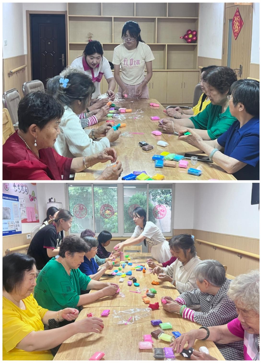 6月28日,团队来到华康社区活动中心,带领老人开展趣味粘土活动。在实践团成员们的指导和帮助下,老年人动手制作了各种彩色粘土作品并与调研团成员分享往昔的故事,既活跃了老年人的身心,同时也让调研团成员们深切感受到老一辈的生活智慧与独特魅力。整个活动充满了教育意义与人文关怀。