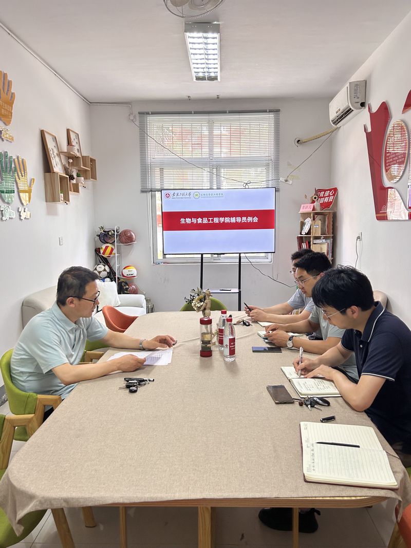 7月3日下午,生物与食品工程学院在男14栋“生师有约”学生和谐社区工作站召开辅导员例会,部署和安排暑期学生工作。学院党委副书记王彦青和全体辅导员参加会议。