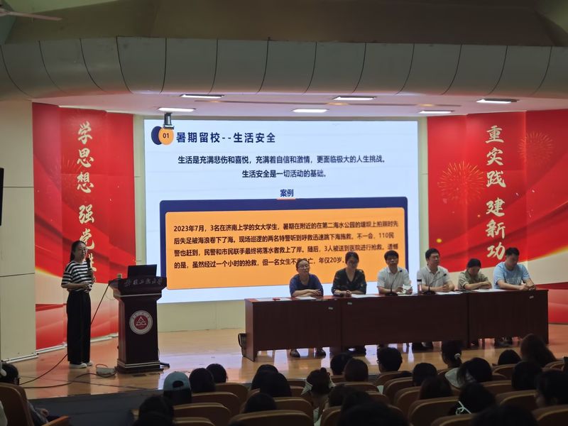 为进一步做好2024年暑假期间留校学生的安全教育管理工作,提高学生的安全意识和防范能力,切实保护好生命和财产安全。7月5日上午10:00,经济与管理学院在学术报告厅召开2024年暑期留校学生安全教育工作会议,学院党委书记水心宝、副书记刘海涛、团委书记、全体辅导员以及留校学生共同参加会议。会议由刘海涛主持。