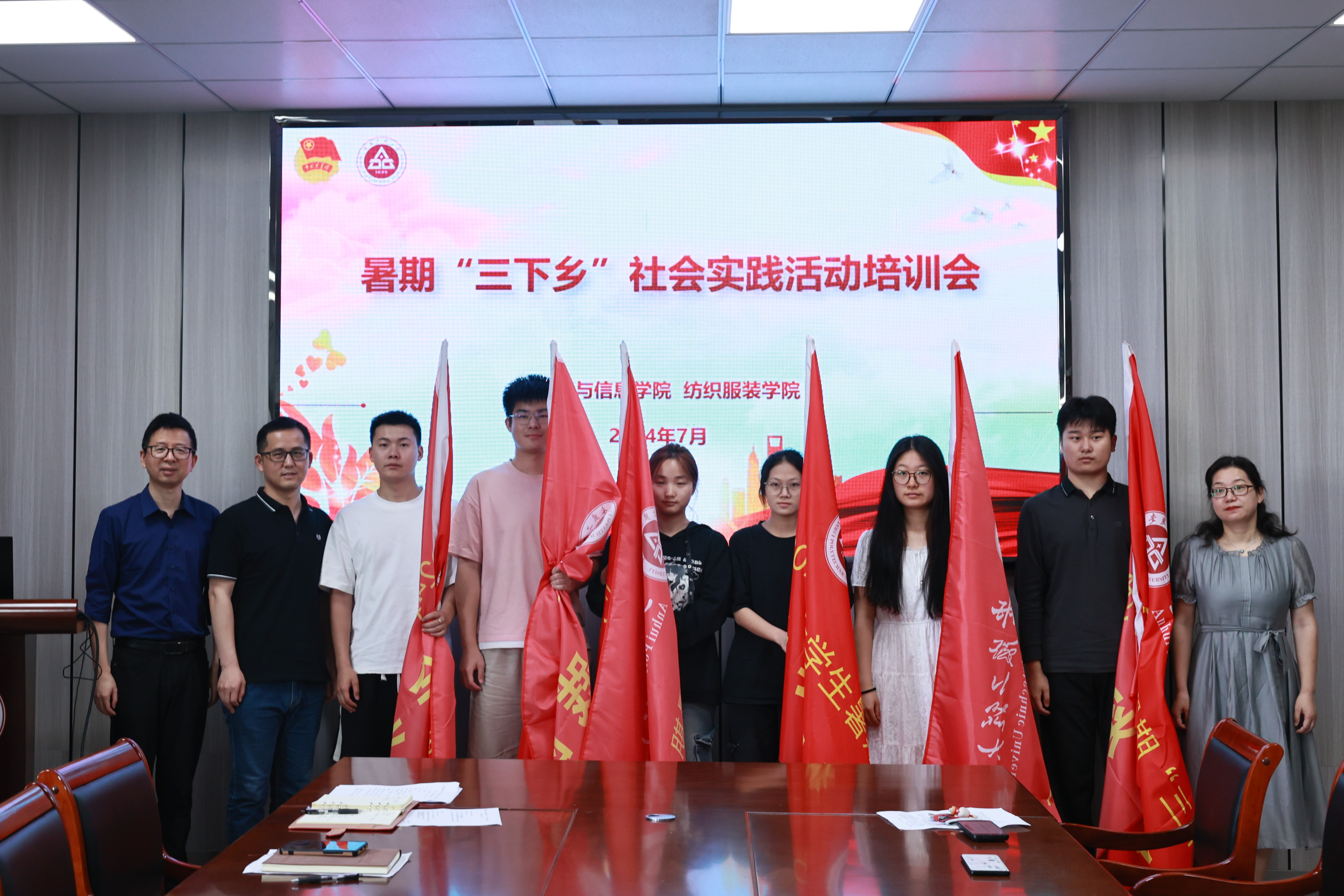 7月3日,纺织服装学院、计算机与信息学院在D座413会议室召开2024年暑期“三下乡”社会实践活动培训会,校团委副书记周海林、计算机与信息学院党委副书记孙德茹、纺织服装学院党委副书记梁雪松、实践团队指导老师、学生负责人参加。会议由计算机与信息学院团委负责人孙力力主持。