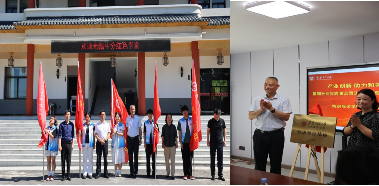 随后,参会领导共同为社会实践团队授旗。何定柱、徐珍珍共同为“劳动实践基地”揭牌。