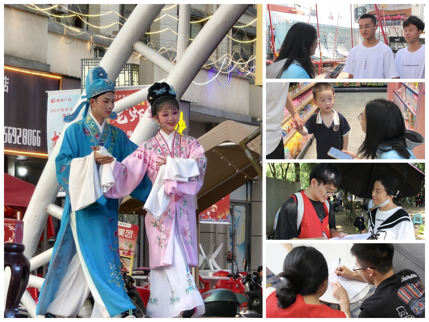 实践团队在宿松县和安庆市区调研黄梅戏的代际传承现状。调研过程恰遇鼎和广场开展“送戏进万村”演出活动,在演出结束后团队随即采访,采访发现大多数老年人对黄梅戏表现出浓厚的兴趣和喜爱,相比之下,许多年轻人表示对黄梅戏这种传统艺术形式了解不够。这种代际差异也引发了大家对传统文化如何在年轻一代中传承与创新的思考。采访结束后,团队遇到一位老书记的分享,他说:“我们需要不断地探索,让黄梅戏贴近年轻人,跨越代沟,以便传承。”团队在这里见证到了黄梅戏的深厚根基,也感受到创新传承的紧迫性。在安庆市区的调研中也出现类似结果,老年人对黄梅戏怀有深厚的感情,黄梅戏已成为他们生活中不可缺一的一部分。而中年人群体则更多地表现出对黄梅戏的尊重和认可。相比之下,年轻人群体对黄梅戏的了解相对较少,但多数人表示愿意尝试去了解和学习这一传统艺术形式。