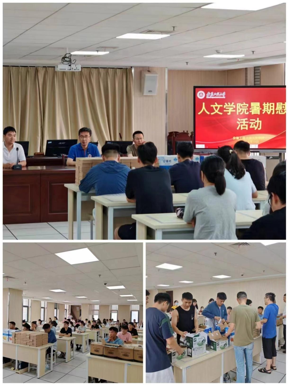 为充分了解学生暑期备考、实习情况,激励学子把握关键节点,8月13日,学院在新图1411会议室开展暑期慰问活动,人文学院党委书记刘一、副院长邹俊、辅导员范夏勋,全体留校本科生、研究生参加慰问活动。