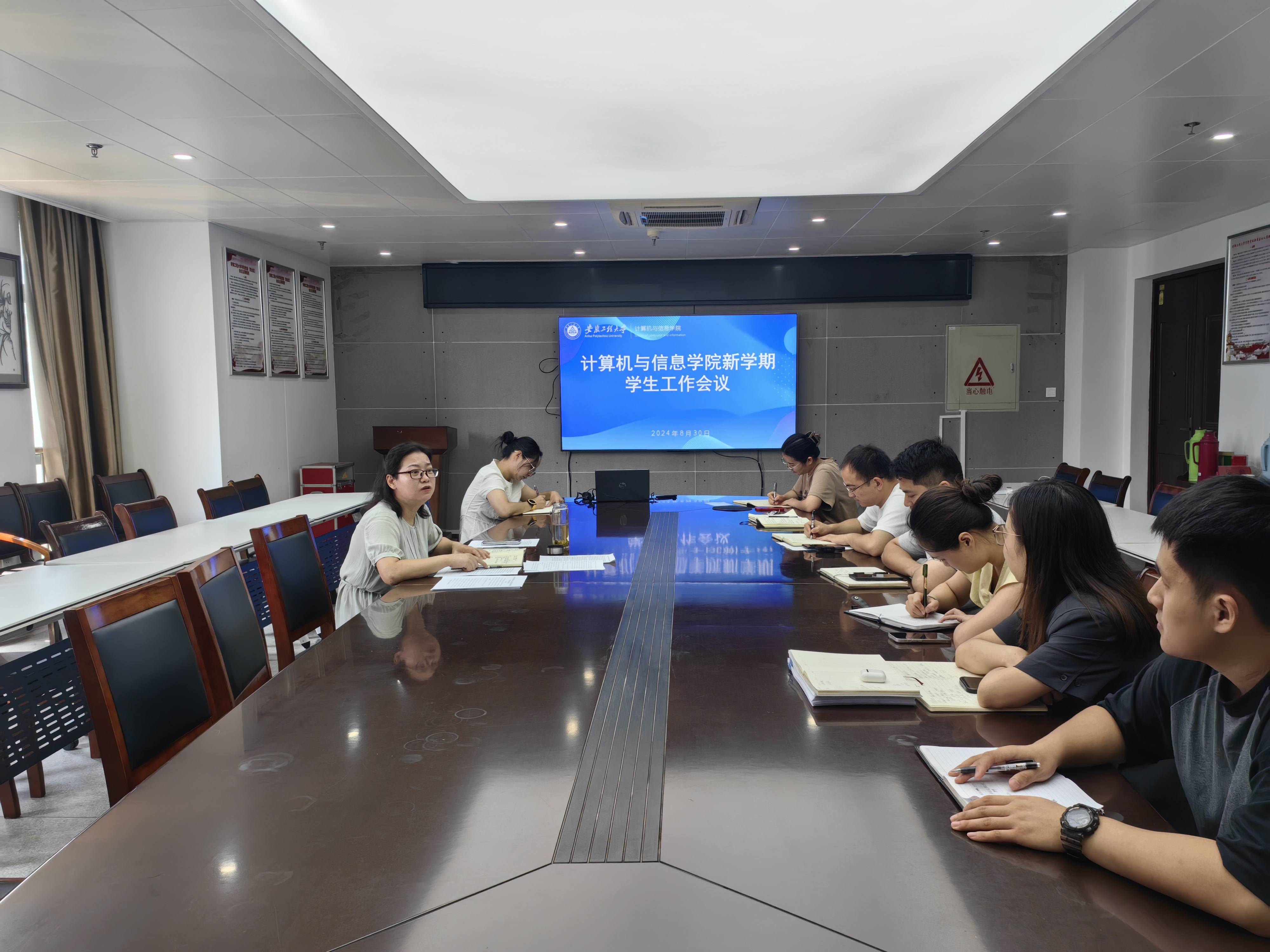 为精心做好新学期开学各项学生工作,提前部署2024年迎新工作,确保新学期学生工作平稳、有序、高效地开展,8月30日上午,计算机与信息学院召开新学期学生工作会议,学院党委副书记、团委书记、专兼职辅导员参加会议,会议由学院党委副书记孙德茹主持。