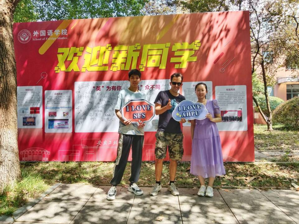 英语学习,从第一天开始。“迎新是一次难得的专业教育机会”,这是参与学院迎新工作的全体师生的共识。从印着英文LOGO的定制T恤,到赠送给新生的印满英文字母的纪念包,英语元素随处可见。学院还专门邀请经验丰富的外籍教师Michael与新生用英语畅谈入学感受,并为新生们提供学习英语口语的建议和指导。同学们对初入校园就能与外教交流感到很兴奋。新生圣子怡表示:“今天是开学第一天,很开心能和外教Michael交流。在对话中,我们了解了彼此的家乡、喜欢的美食以及对校园的印象。全程用英文交流,使我认识到自己的口语还有很多欠缺,期待与这位亲切又有趣的外教在课堂上学习提升口语”。在当今全球化的时代,良好的口语能力对于个人的发展至关重要。为了帮助新生们尽快开启口语学习之旅,学院正在谋划新学期“口语广场-英语角”活动以及各类英语相关竞赛,不断提升学生用英语讲好中国故事的能力。