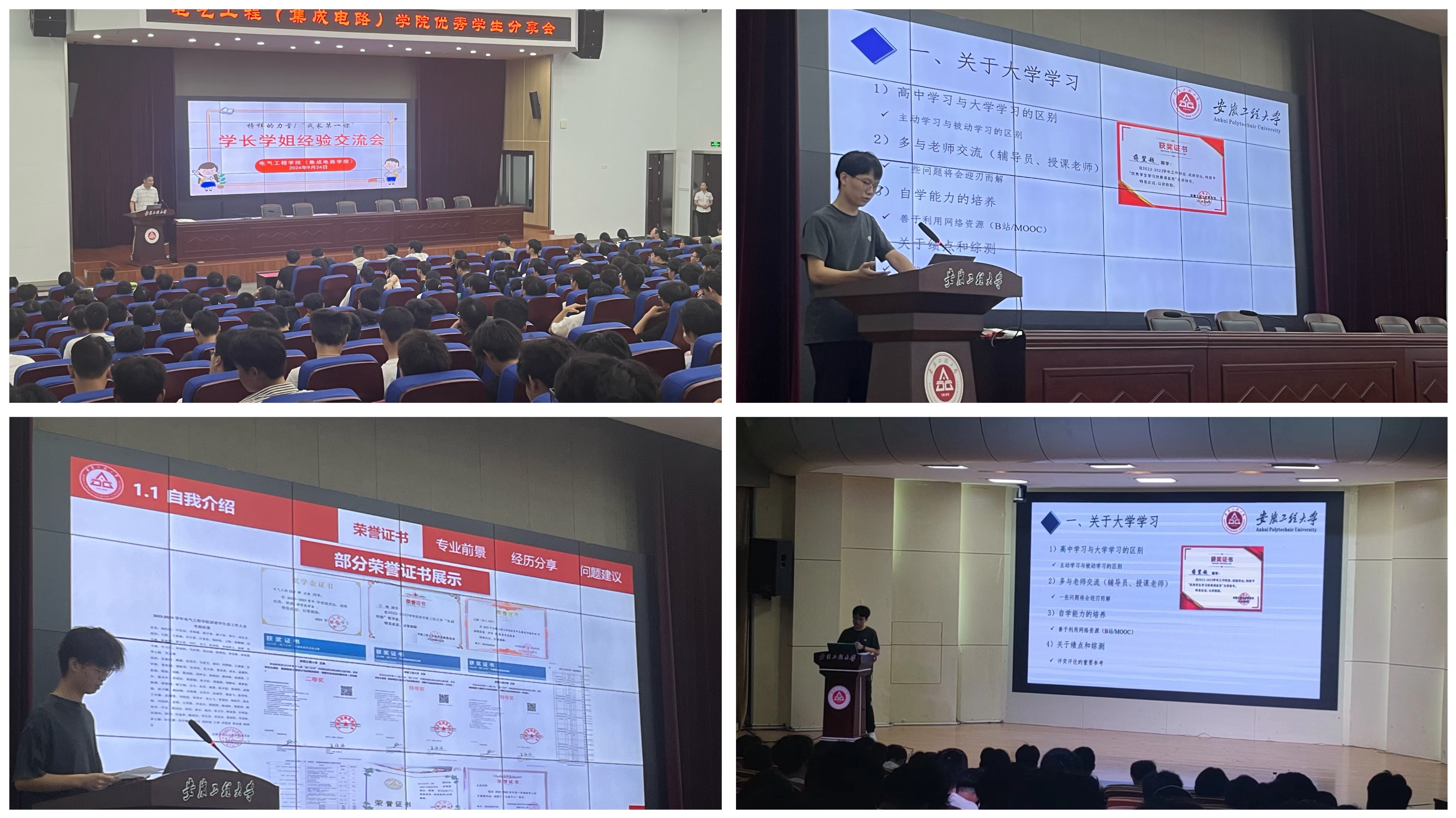 为充分发挥先进典型的示范引领作用,助力2024级新生开启大学新篇章。9月24日,电气工程学院(集成电路学院)分别在图书馆五楼会议室、学术报告厅举办以“青春逐梦 榜样领航”为主题的优秀学子成长经验分享会。四位优秀的学长学姐和社团协会负责同学受邀给学院1100多名2024级新生分享成长经验。