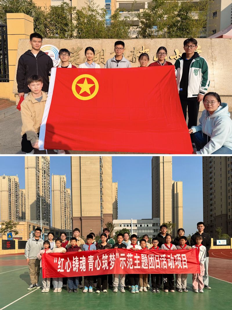 为深入学习贯彻党的二十大和二十届二中、三中全会精神,切实加强广大青年思想政治引领,进一步弘扬爱国主义教育,提升学生民族自豪感,10月23日下午,化学与环境工程学院应化211班团支部赴赭山小学(荆山校区)开展“红心铸魂、青心筑梦”示范主题团日活动。活动邀请校国旗护卫队成员代表参加。项目指导老师王康、刘俞枚,应用化学专业211班团支部成员参加活动。