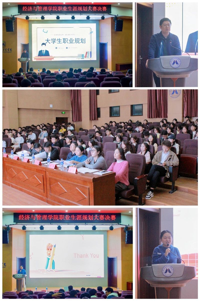 为提升大学生职业规划意识,引导大学生树立正确的成长成才观和择业就业观,经济与管理学院于11月1日晚上6:30在C座7楼报告厅举办院大学生职业规划大赛决赛。学院党委副书记刘海涛、团委书记赵恒梅、辅导员徐博,电气工程学院张苗、材料科学与工程学院鲁力、化学环境与工程学院王孟黎等担任本次比赛评委,经济与管理学院各专业学生代表150余人现场观摩本次比赛。