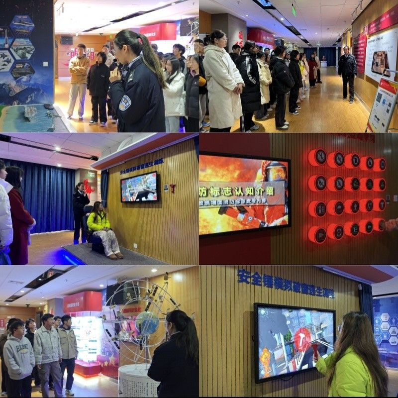 在安全教育实验室,讲解员通过知识教学、案例分析、情景模拟、逃生演练等方式开展内容丰富的教育体验活动,详细介绍了海姆立克急救法、地震逃生演练、突发事情应急处置演示、常见消防标识辨识、常见灭火器材与消防栓的使用等安全知识。