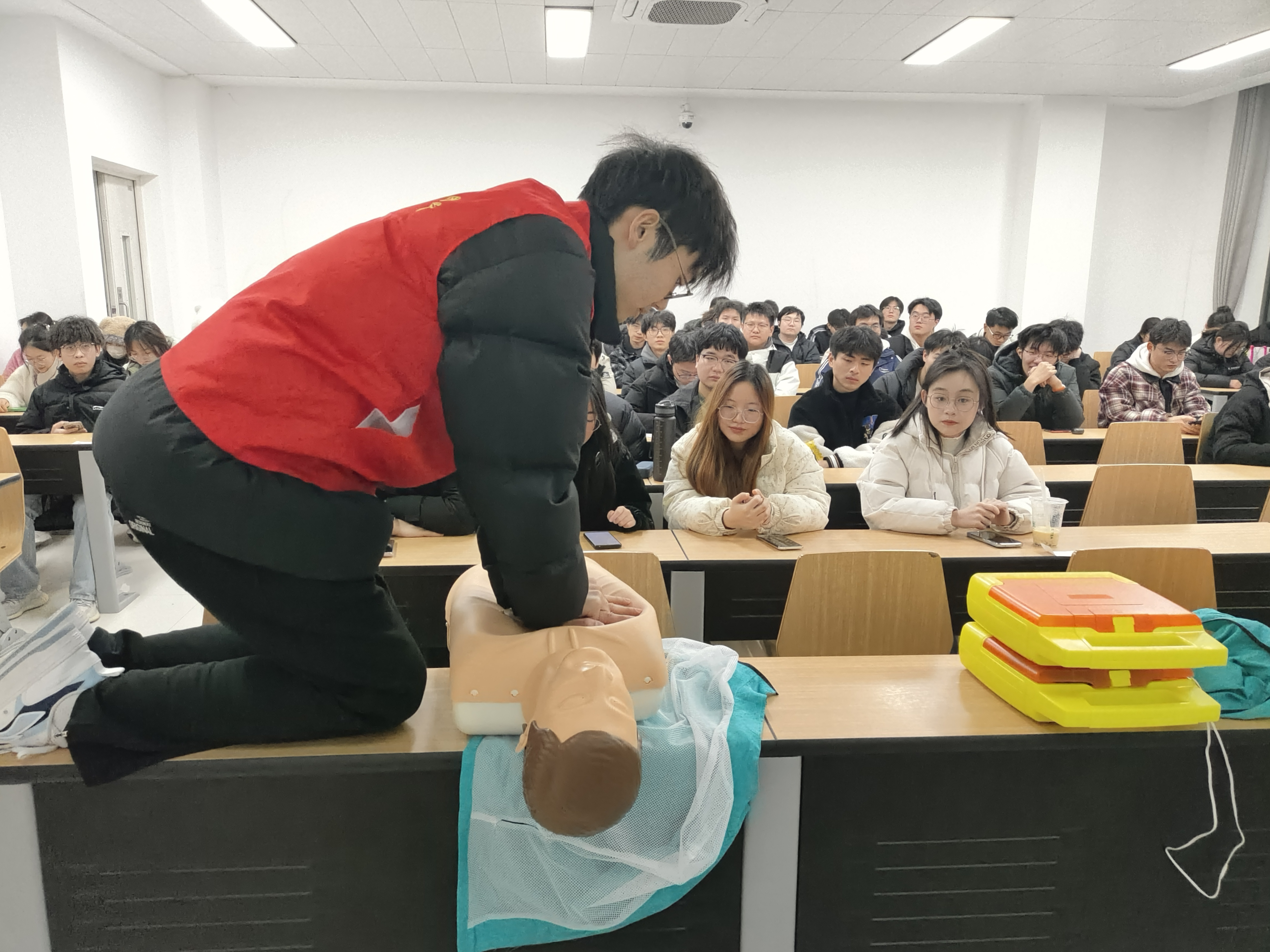 活动伊始,经过专业培训的志愿者们深入浅出地讲解了海姆立克急救法的原理和适用场景,通过生动的案例和形象的演示,让同学们深刻认识到在应对异物卡喉等紧急情况时的重要性,无论是成人、儿童还是婴儿的不同急救手法都让同学们有了清晰的认知。在实践环节,同学们踊跃参与,在志愿者的悉心指导下,亲身体验操作步骤,从背后环抱、手部定位到用力挤压,一招一式都认真揣摩练习。
