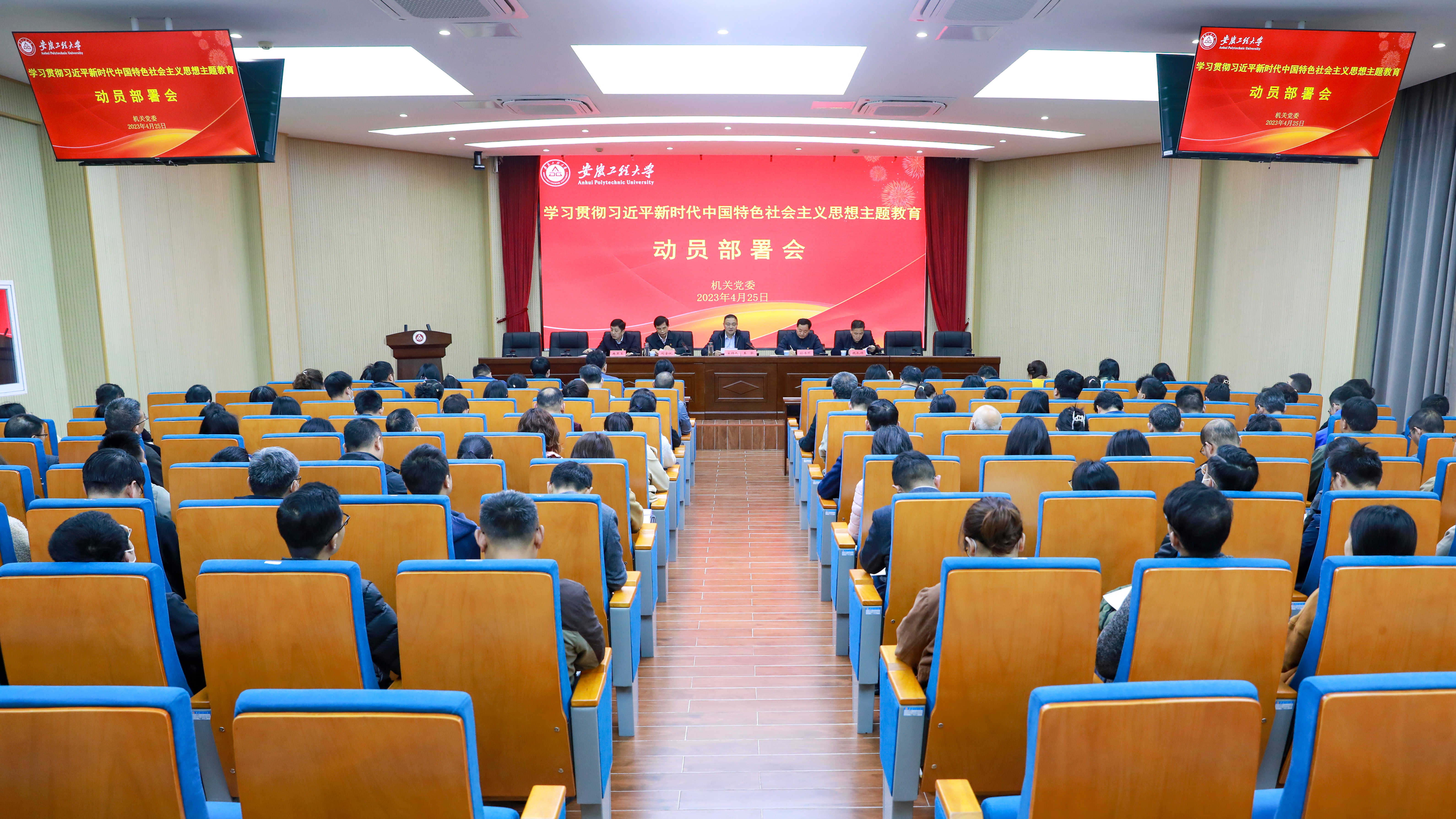 本网讯4月25日,机关党委召开学习贯彻习近平新时代中国特色社会主义思想主题教育动员部署会暨理论学习中心组学习扩大会议。学校主题教育第一检视整改组到会指导,机关党委委员、理论学习中心组成员、全体党员参加会议。会议由机关党委书记王弘主持。