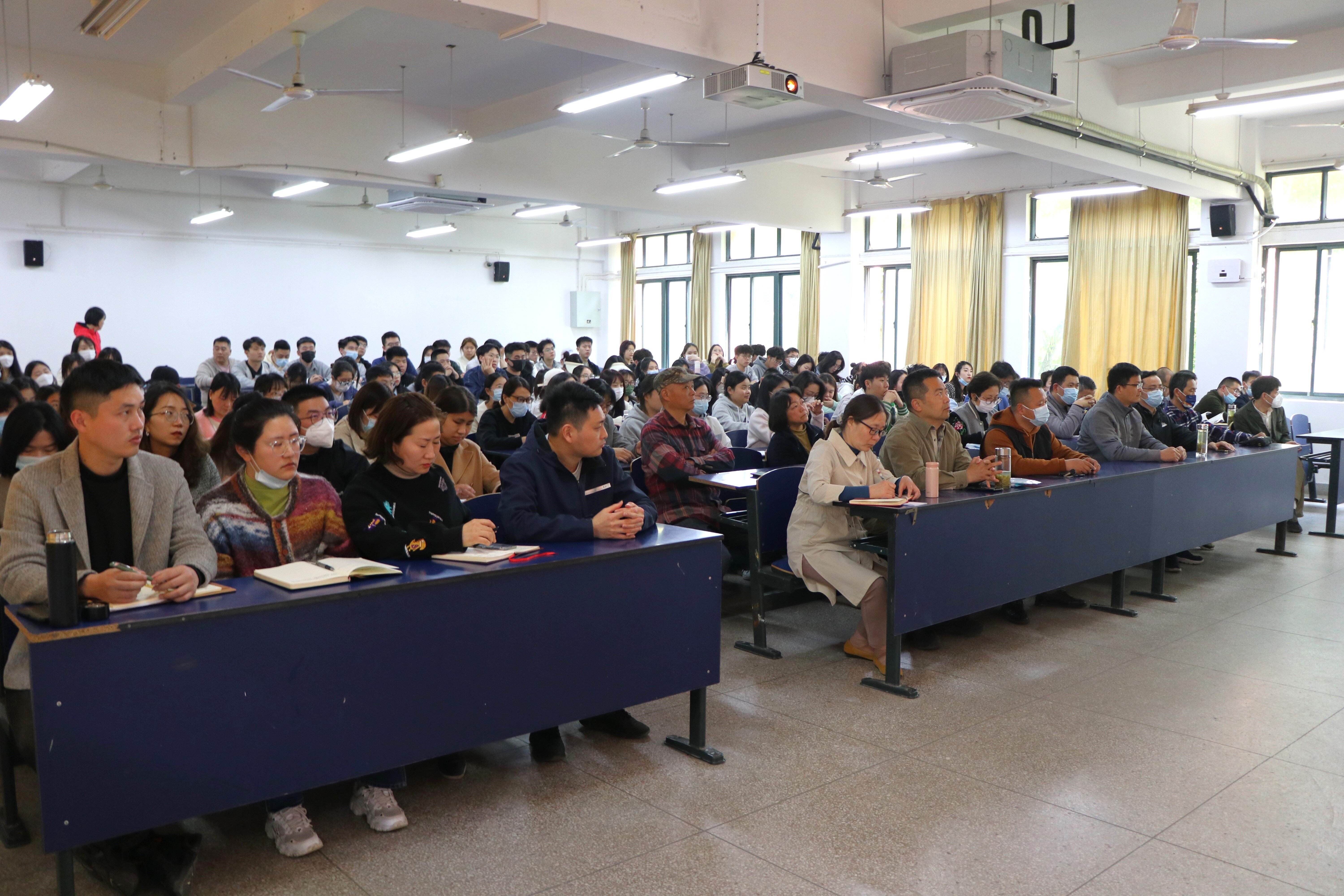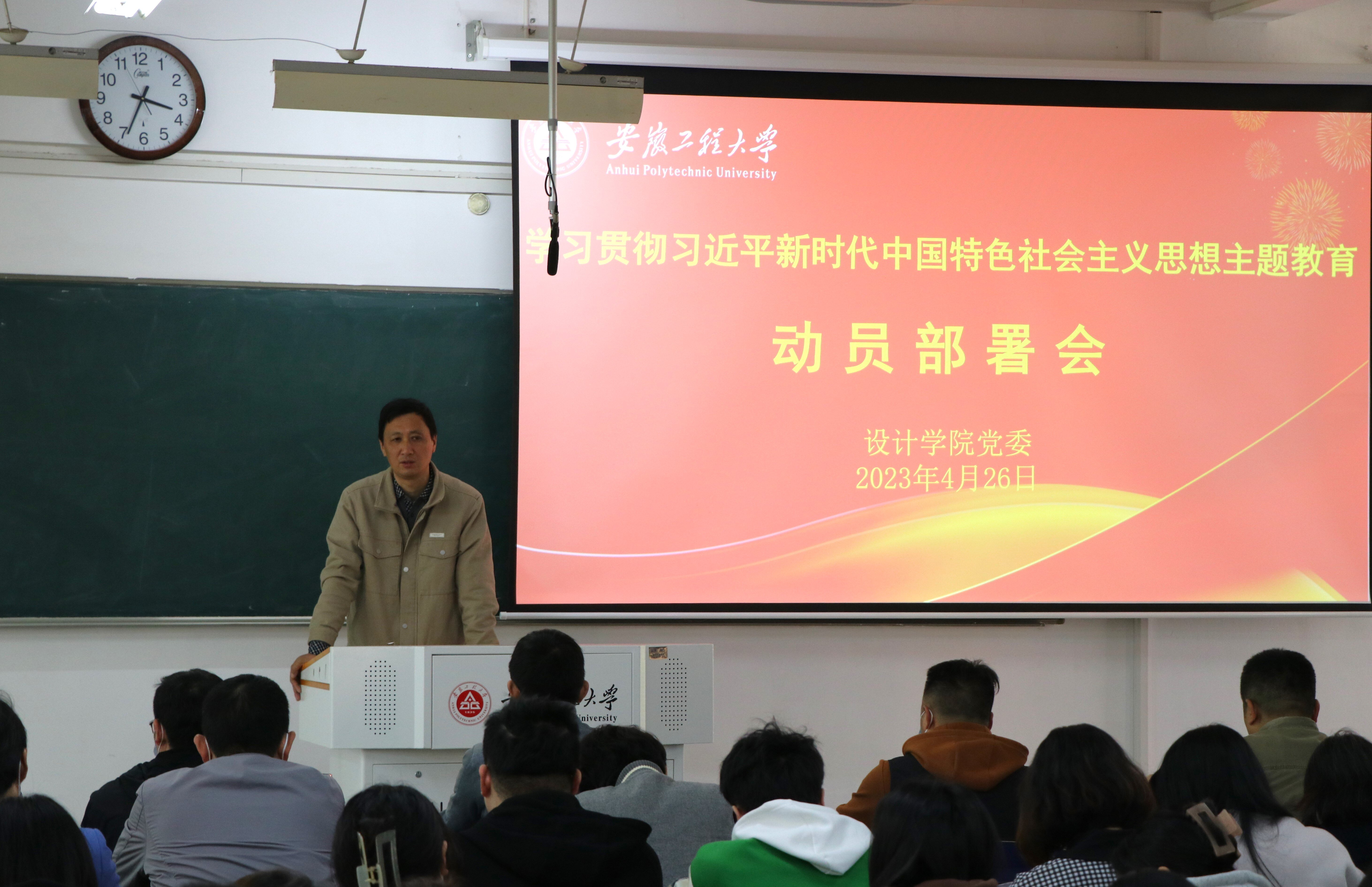4月26日,在校主题教育督查指导组指导下,学院召开了学习贯彻习近平新时代中国特色社会主义思想主题教育动员会,全体党员、党政班子成员和干部参会。会议由党委副书记彭海燕主持。党委书记胡家增传达了上级关于主题教育的文件精神,学习了学校工作方案。会议动员全体党员立刻行动起来,深刻认识开展主题教育是党中央为全面贯彻落实党的二十大精神、动员全党同志为完成党的中心任务而团结奋斗所作出的重大部署,每名党员和干部要按照工作要求,坚持读原著学原文悟原理,坚持不懈用习近平新时代中国特色社会主义思想凝心铸魂,提高政治判断力、政治领悟力、政治执行力,深刻领悟“两个确立”的决定性意义,增强“四个意识”、坚定“四个自信”、做到“两个维护”。胡家增强调要加强理论学习,提高政治素质,积极担当作为,以优良的工作作风和过硬的本领推动学院高质量发展。全体党员要锤炼党性,发挥先锋模范作用,学思想,抓课堂,抓宿舍,增强责任感和使命感,为自身突破打好基础,为学院发展贡献力量。