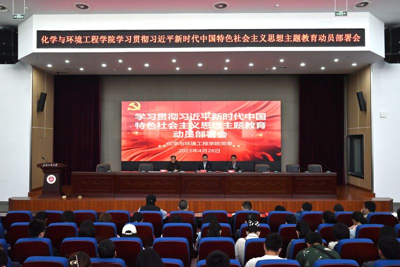 本网讯4月26日,化环学院在校图书馆五楼会议室召开学习贯彻习近平新时代中国特色社会主义思想主题教育动员会,会议由学院党委书记章兵主持,校主题教育督导组成员李恒奎、学院领导班子成员出席,全院师生党员参加。