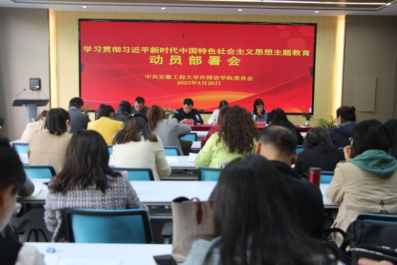 本网讯4月26日,外国语学院党委学习贯彻习近平新时代中国特色社会主义思想主题教育动员部署会在9J209会议室召开,学院党政班子成员、理论学习中心组成员、全体党员教师、学生党员代表出席会议,院党委书记董金权主持会议并作动员讲话。