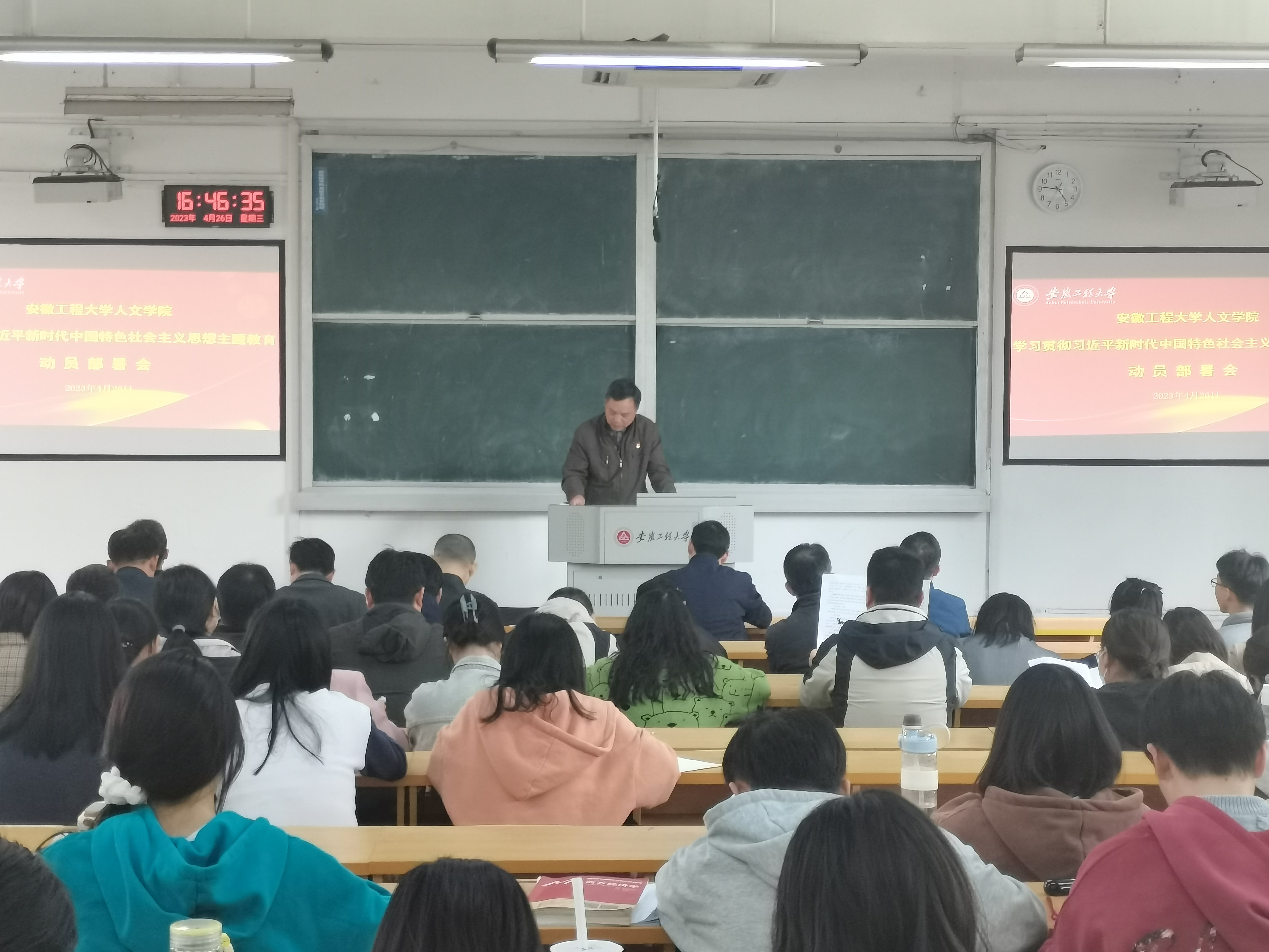 本网讯4月26日,人文学院党委召开学习贯彻习近平新时代中国特色社会主义思想主题教育动员大会,学院党委委员、全体处级干部、全体师生党员参加会议。会议由学院党委书记邓英扣主持。