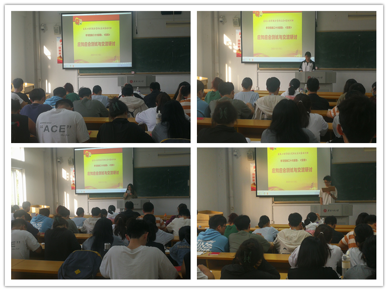 全体学员准备充分,课堂测试效果良好。测试结束后,学员们踊跃上台交流发言。培训班班长蔡习文在发言中说,党的二十大精神博大精深、思想深邃,作为培训班学员要在全面学习上下功夫、在全面把握上下功夫、在全面落实上下功夫,只有做到全面深入学习、精准把握精髓要义,才能学深悟透、全面贯通、多维发力,倡导大家以主题教育为契机,在理论学习上走深走实,在工作上立足本职奋进新征程、不负韶华。学员沈雅婷结合习近平总书记考察调研中国人民大学时的重要讲话,认为作为新时代的青年大学生要“用脚步丈量祖国大地”,带着所学理论向现实拓展,了解国情民意,为祖国的繁荣昌盛增光添彩;要“用眼睛发现中国精神”,把理论学习与社会主义现代化建设联系起来,主动参与到丰富多彩的社会实践中去,自觉当中国精神的信仰者、传播者和践行者;要“用耳朵倾听人民呼声”,厚植人民情怀、站稳人民立场,主动深入人民群众之中,在为人民利益的不懈奋斗中书写壮丽的青春华章;要“用内芯感应时代脉搏”,与时代同行、同频共振,担当时代使命。学员王孝琦说,作为新时代的大学生,要自觉学习习近平新时代中国特色社会主义思想,坚定理想信念,牢记初心使命,决心跟党走;要发挥青年人的优势,勇担实现中华民族伟大复兴中国梦的历史使命,在服务社会中贡献力量;在学生时代要主动参与到丰富多彩的社会实践与志愿服务中去,历练自己、提升本领、奉献社会。其他学员结合自身实际,纷纷上台交流学习成效、学习心得,围绕如何理论联系实际、如何把党章党规要求与党的二十大精神转化成为青年大学生自觉担当作为、如何以实际行动奉献社会等进行了热烈地交流。通过研讨交流,进一步提高了认识,深化了对理论的理解,升华了培训学习的意义。