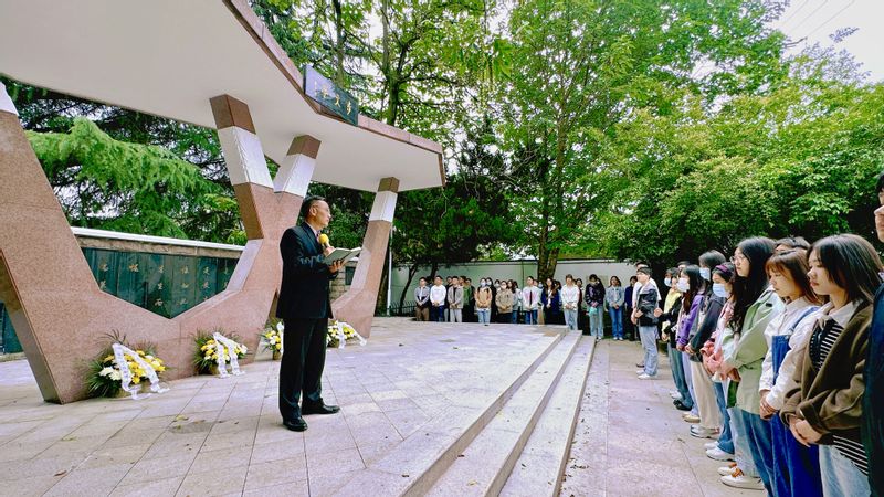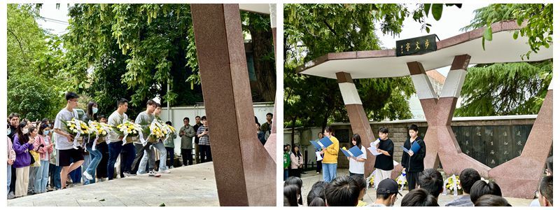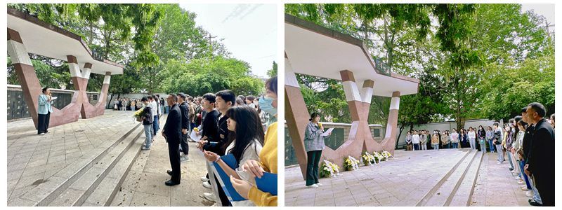 典礼开始,学员代表向王步文烈士纪念亭——步文亭敬献花篮,全体师生集体三鞠躬,表达对王步文烈士的敬仰之情。魏晴晴向大家介绍了王步文烈士的生平事迹。培训班学员以诗歌朗诵的形式表现了王步文烈士在与敌人斗争时的英勇无畏精神,体现了共产党员的坚定意志。