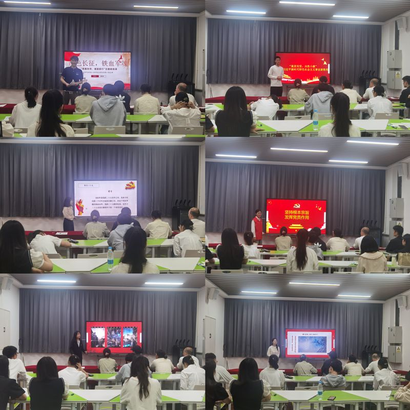 参赛选手围绕学习贯彻习近平新时代中国特色社会主义思想主题教育和党的二十大精神,结合党史、新中国史、改革开放史、社会主义发展史、中华民族发展史,回顾党的百年光辉历程,讲述了一个个红色革命故事,歌颂祖国的繁荣富强,展现青年学生的责任与担当,体现“三全六专”育人成效。化工201班李进以“长路漫漫,征为人先”为题,讲述了通过思政课VR的体验,打开红军长征之书的故事;研究生21班李思琪围绕“三束烛光见初心,星火相传永不息”致敬先进人物;高分子202班王星结合自身成长经历讲述了“脱贫攻坚,历史跨越”的生动微党课。