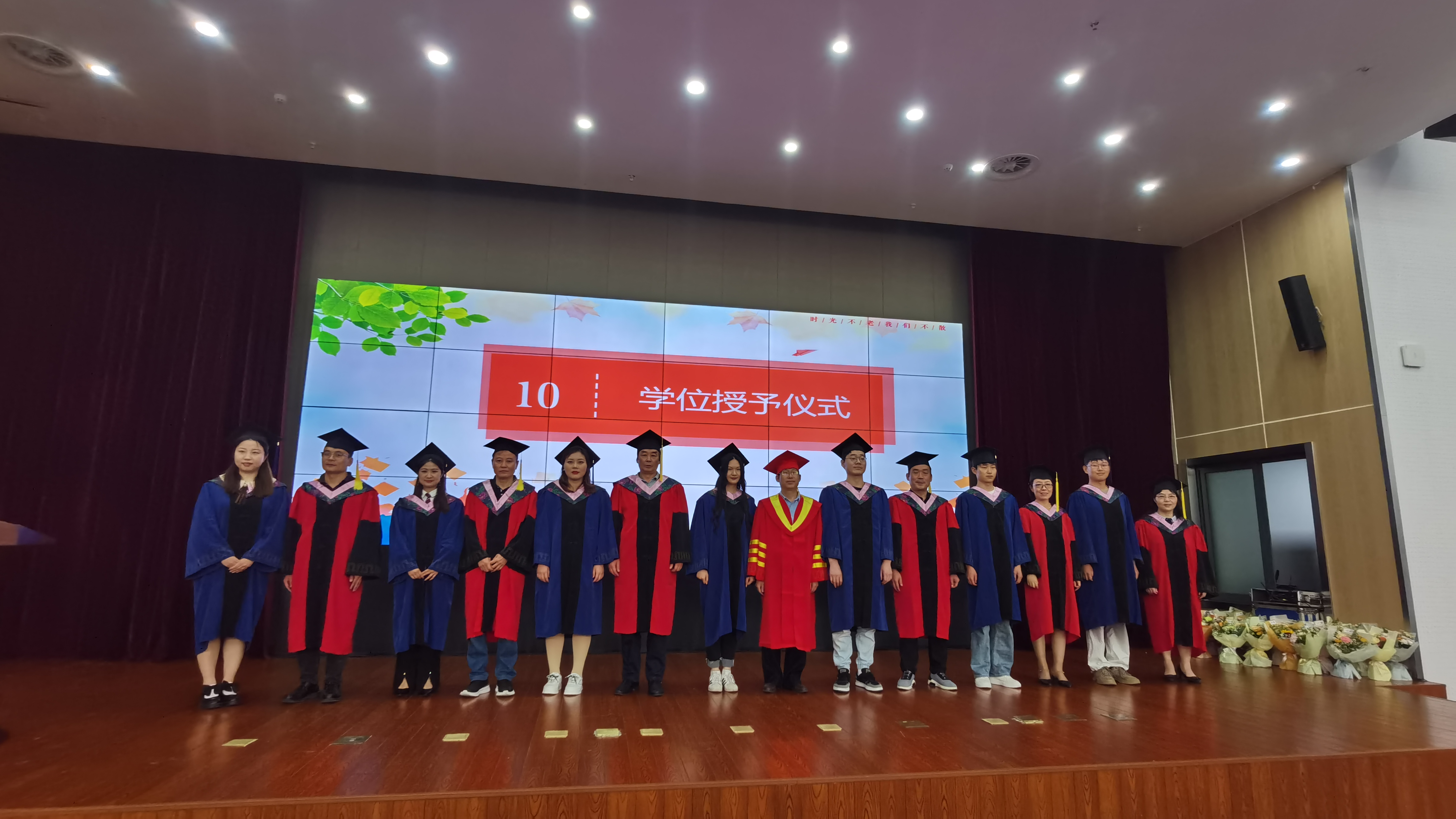 在学位授予环节,毕业生一一上台,接受师长们拔穗并合影留念。