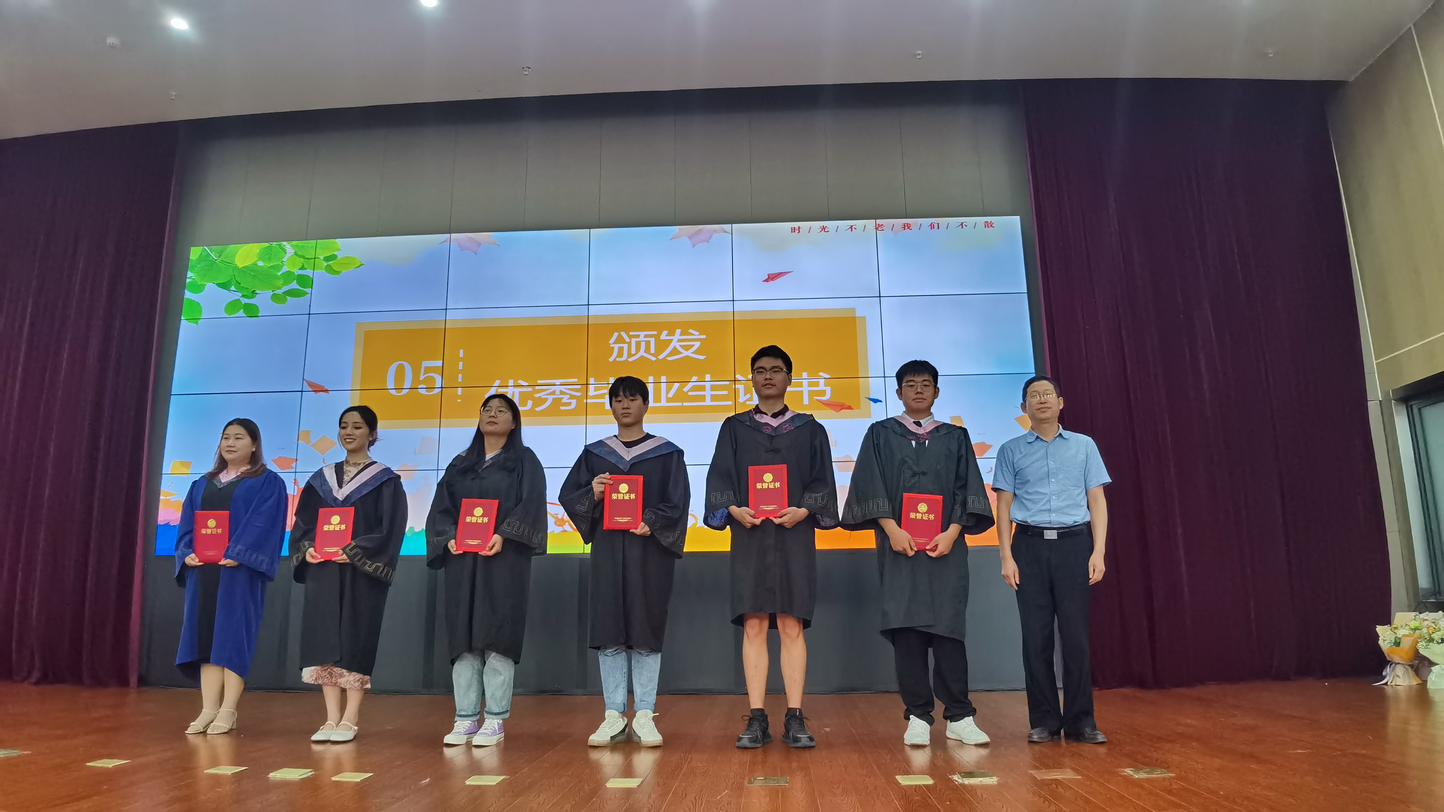 程双四深情寄语全体毕业生。他代表学校向166名本科毕业生、21名硕士毕业生圆满完成学业表示衷心的祝贺,向辛勤哺育陪伴同学成长成才的父母和教师致以诚挚的敬意!他对毕业生提出三点希望:要心怀“国之大者”,坚定理想,把个人追求和国家发展紧密结合;要牢记“行之要者”,踔厉奋发,珍惜每一次锻炼成长的机会,在积极实干中提升自我奋勇争先;要不忘“心之所向”,追求卓越,以殷殷爱国之情、拳拳赤子之心,在实现伟大中国梦的历史接力赛中不断开拓创新。