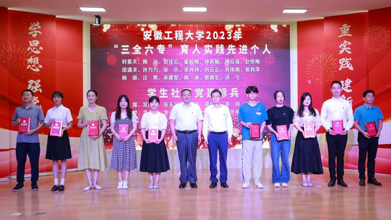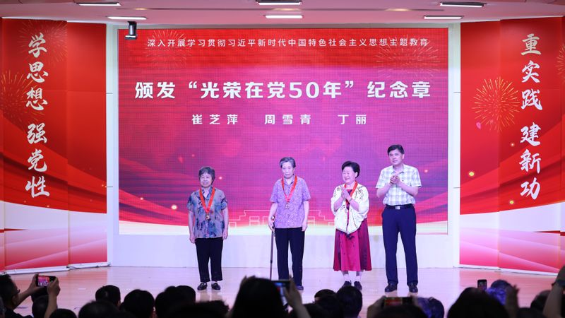 大会为“光荣在党50年”纪念章获得者,2023年校级先进基层党组织、优秀共产党员、优秀党务工作者、优秀德育工作者,学校2023年“‘三全六专’育人实践先进个人”“学生社区党建标兵”获得单位及个人颁奖。
