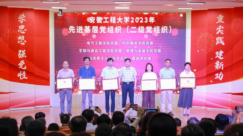 本网讯6月29日,学校在学术报告厅举行庆祝中国共产党成立102周年“七一”表彰暨主题党日活动。校领导张志宏、卢平、苏国红、郑健、程双四、凤权、徐柳凡,校党委常委孙浩然、王弘、周晓宏等出席活动并为受表彰代表颁奖。各职能部门主要负责人,各二级党组织书记、副书记,“光荣在党50年”老党员和离退休教师代表,党支部书记代表,受表彰人员和教师代表参加活动。