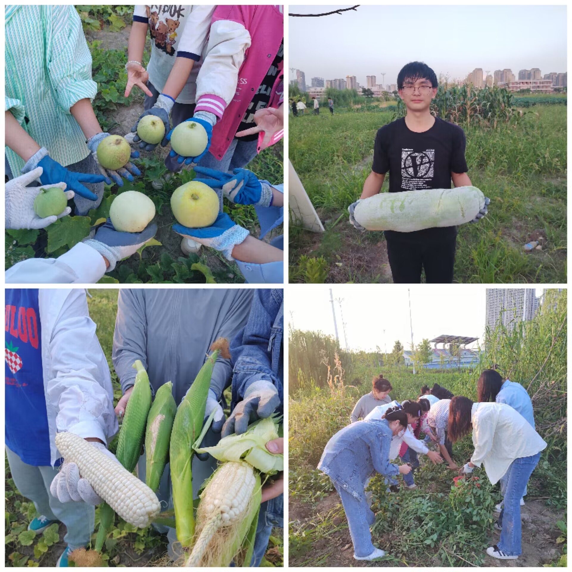 劳动现场,同学们自发组队,分工合作,采摘瓜果蔬菜,炎热的天气丝毫没有影响同学们劳动的热情。电科201的丁子心同学开心地说:“留校备考研究生,学习生活相对单调、每日固定,容易让心情浮躁。虽然天热流汗,但采摘过程特别解压,充满乐趣,心情也好了起来。”