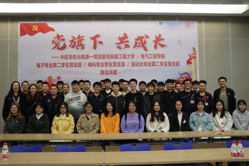电科专业学生党支部、自动化专业第二学生党支部和电子专业第二学生党支部前往中航华东光电有限公司与公司第一党支部开展联合共建活动。活动形式新颖、内涵丰富,深受同学们喜爱。在“党旗引领航空人”集体参观活动阶段,企业支部书记带领大家参观了企业展厅,让同学们了解公司发展历程及企业文化。企业先进的科技产品、人性化的管理及创新实力给同学们留下深刻的印象;在“学党史悟思想、同进步共成长”主题党课阶段,企业邀请了芜湖市党史和地方志研究室副主任谢迎春老师,在中航华东一层报告厅为同学们上了一堂 “讲好芜湖故事,建设人民城市”的精彩主题党课,他真情的期盼安工程的学子能扎根芜湖,为城市发展做出贡献;在“青春心向党,奋斗正当时”支部成员交流会阶段,优秀校友热情地回答了同学们所关心的专业发展情景及未来求职问题。