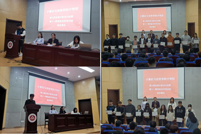 本网讯11月19日下午,计算机与信息学院分党校第九期发展对象培训班暨第十一期预备党员培训班结业典礼在C座五楼报告厅举行。学院党委副书记孙德茹,培训班班主任王鸣鹃、魏晓飞和164位结业学员参加本次典礼,典礼由本期发展对象培训班班主任王鸣鹃主持。