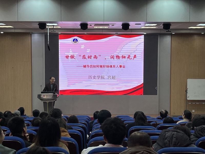 培训邀请全国辅导员年度人物提名奖和入围奖、全省高校优秀辅导员年度人物、全省“向上向善好青年”爱岗敬业提名奖获得者,安徽师范大学历史学院副处级辅导员宫超作题为“甘做及时雨,润物细无声——辅导员如何做好铸魂育人事业”的专题讲座。他从“铸魂育人,引领无处不在”“沟通交流,掌握入门技巧”“学风班风,助力学生成才”“教育有法,分享八字感悟”四个方面,对辅导员如何做好铸魂育人事业进行了深入浅出的论述。他强调,要想做一个合格的辅导员,必须做到有爱、讲法、明责、善学,应当努力成为学生成长成才的人生导师和健康生活的知心朋友。