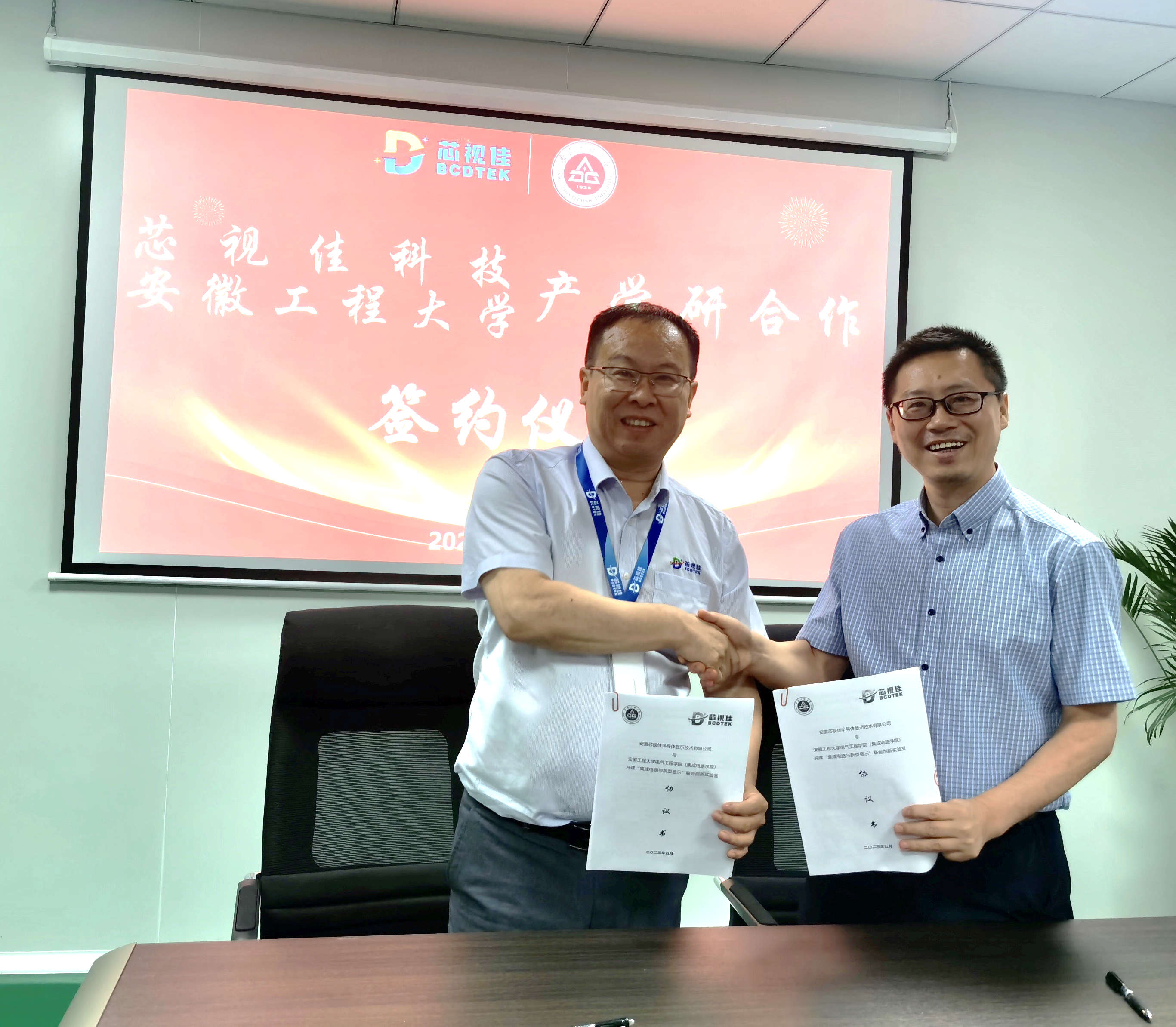6月13日,电气工程学院(集成电路学院)副院长(主持工作)林信南与青年教师杨康、黄登朝、王翔一行4人赴安徽芯视佳半导体显示技术有限公司(淮南)开展企业交流合作活动,双方签订了产学研战略合作协议,并为校企合作共建“集成电路与新型显示”联合创新实验室揭牌。公司董事长曹绪文、总经办负责人王睿、产品负责人孙圣、沈利军等领导出席了相关活动。