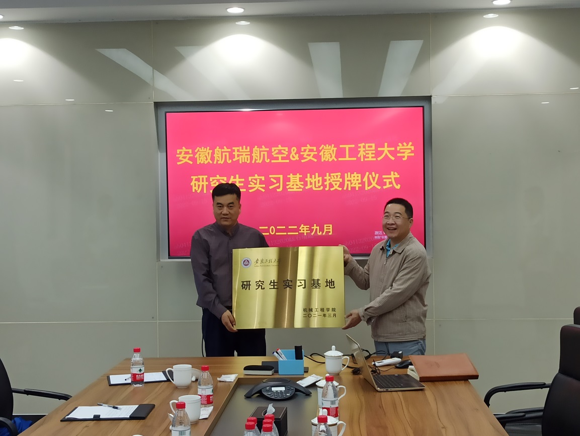 9月15日下午,机械工程学院院长王建平带队赴安徽航瑞航空动力装备有限公司参加“RayBetApp官网下载-航瑞动力研究生实习基地”揭牌仪式。航瑞动力公司董事长朱航及研发工作人员等出席了揭牌仪式。