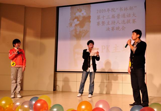 由校党委宣传部主办的第十三届“书林杯”普通话大赛暨主持人选拔赛决赛于12月2日晚七时在学术报告厅隆重举行。校党委委员、宣传部部长苏国红,有关职能部门和各系负责同志莅临现场观看了晚会。