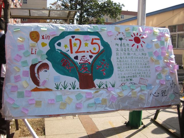 12 月5日 上午9时在女生6栋楼下,大学生心理协会举办了一场“要爱我”现场心理咨询及趣味测试活动,活动以“ 12.5” 谐音为名。本次活动包括现场咨询、心理测试和心灵寄语三个部分组成,活动旨在让广大学生树立起关爱自我的意识,营造人人关心心理健康的良好氛围,帮助他们掌握心理调适方法,消除心理困惑,增强克服困难、承受挫折的能力,树立积极进取的人生态度,培养学生良好的个性心理品质,促进全面发展。