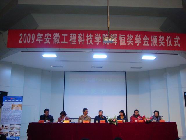 颁奖大会上,纺织服装系学生代表向南京辉恒纺织服装有限公司的嘉宾敬献鲜花,系副主任毕松梅宣读了纺织服装系《关于2009年度“辉恒”奖学金评比结果的通报》的文件,出席会议的企业嘉宾和系领导为获得2009年度“辉恒”奖学金的同学颁发证书并与获奖同学合影。颁奖大会上,系党总支书记余新霞还颁发了“金方研究生入学奖学金”。余新霞、房贞民、马爱民等分别做了重要讲话,“辉恒”奖学金特等奖获得者、服工071班何慧同学代表获奖学生向南京辉恒纺织服装有限公司致感谢辞。