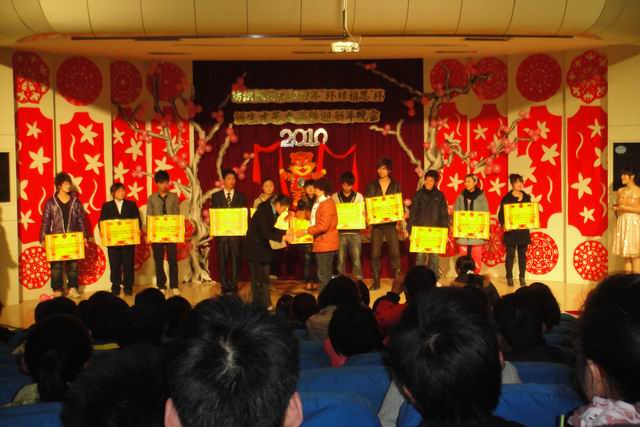 经评委团公正公平的评议后,以情动人的话剧《转角遇到阳光》荣获本次大赛及晚会的一等奖,《墨韵》等三个节目荣获二等奖,《和谐校园文明行》等五个节目获得三等奖,《星星变奏曲》等四个节目获得优秀奖。观看晚会的领导和嘉宾为获奖节目颁发奖状并合影留念。