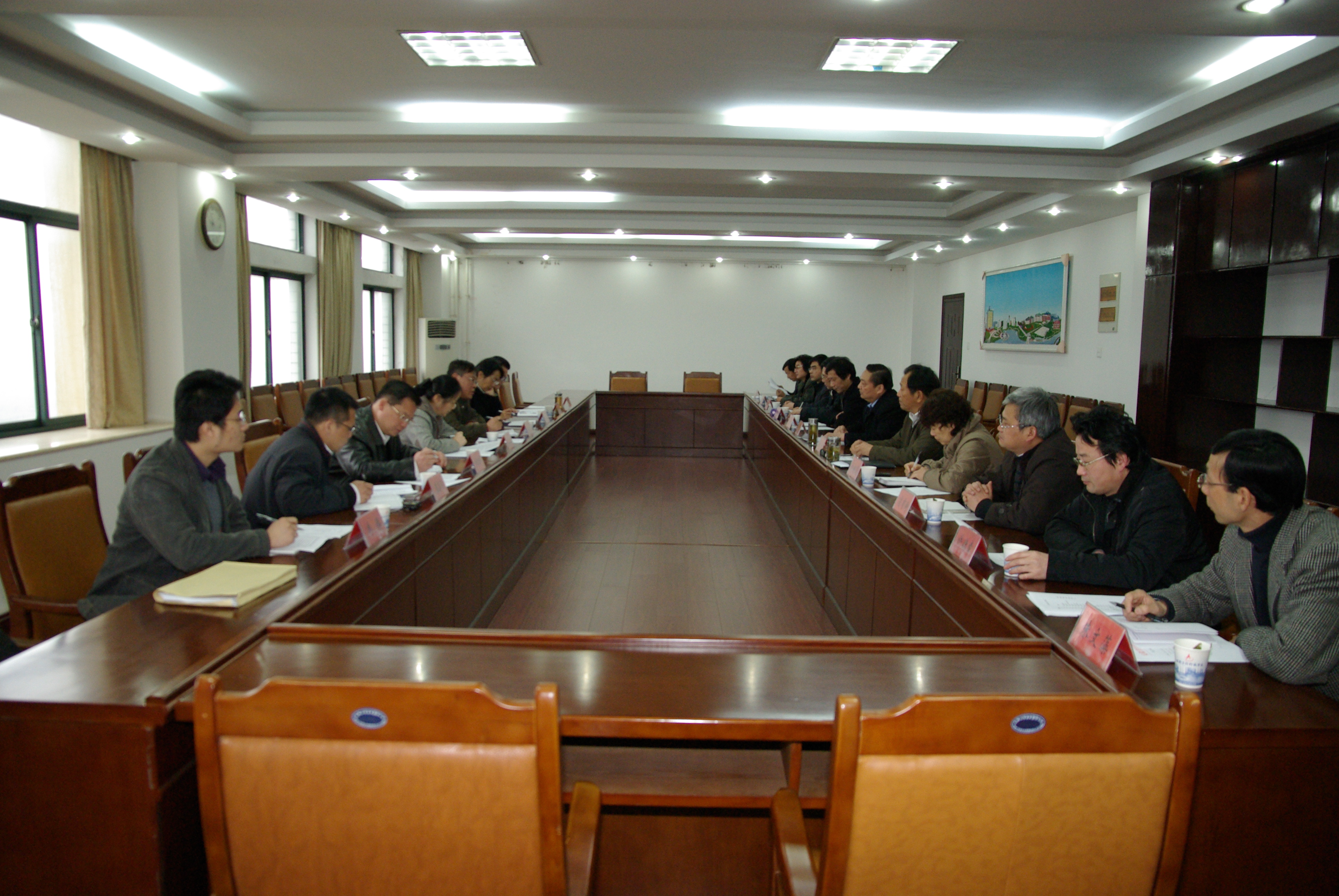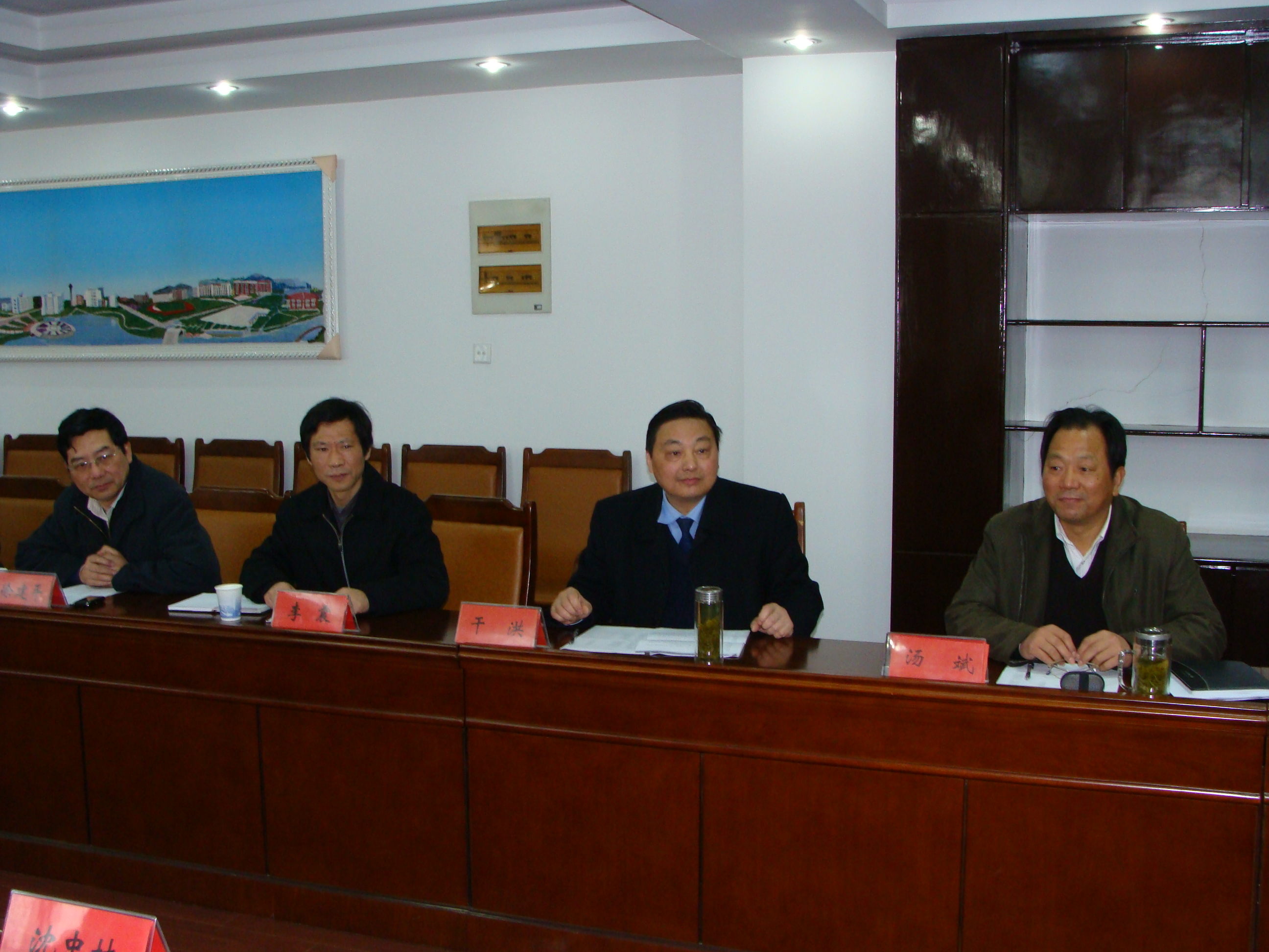 调研组负责人省经信委科技处副处长沈忠林介绍了此次调研的目的,此次调研主要为省政府即将出台的,支持皖江城市带承接产业转移示范区有关政策提供参考。干洪对调研组的到来表示欢迎,简要介绍了我校的基本情况,接着干洪介绍了我校更大成功,全面实施以“2+