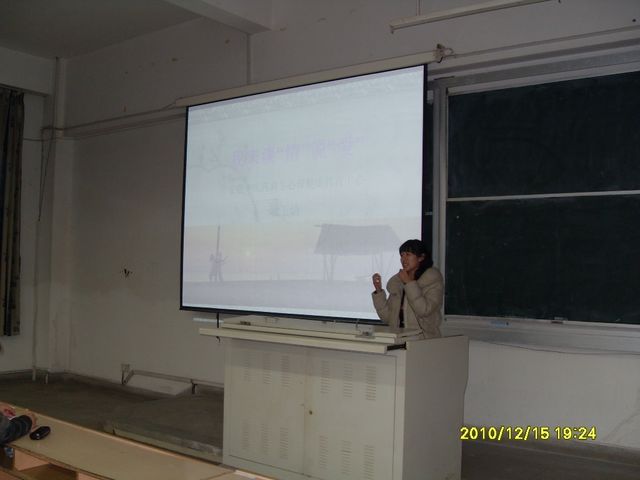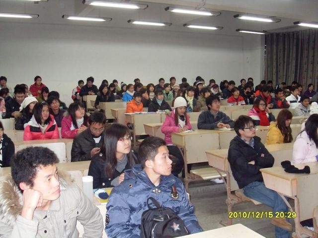 2010年12月15日晚,应学生处邀请,安徽中医药高等专科学校大学生心理健康教育中心的耿玉洁老师在我校举行了主题为“大学生爱情心理漫谈”的讲座。2010级部分班级心理健康委员、大学生心理协会成员代表以及对此主题感兴趣的同学参加了本次活动。