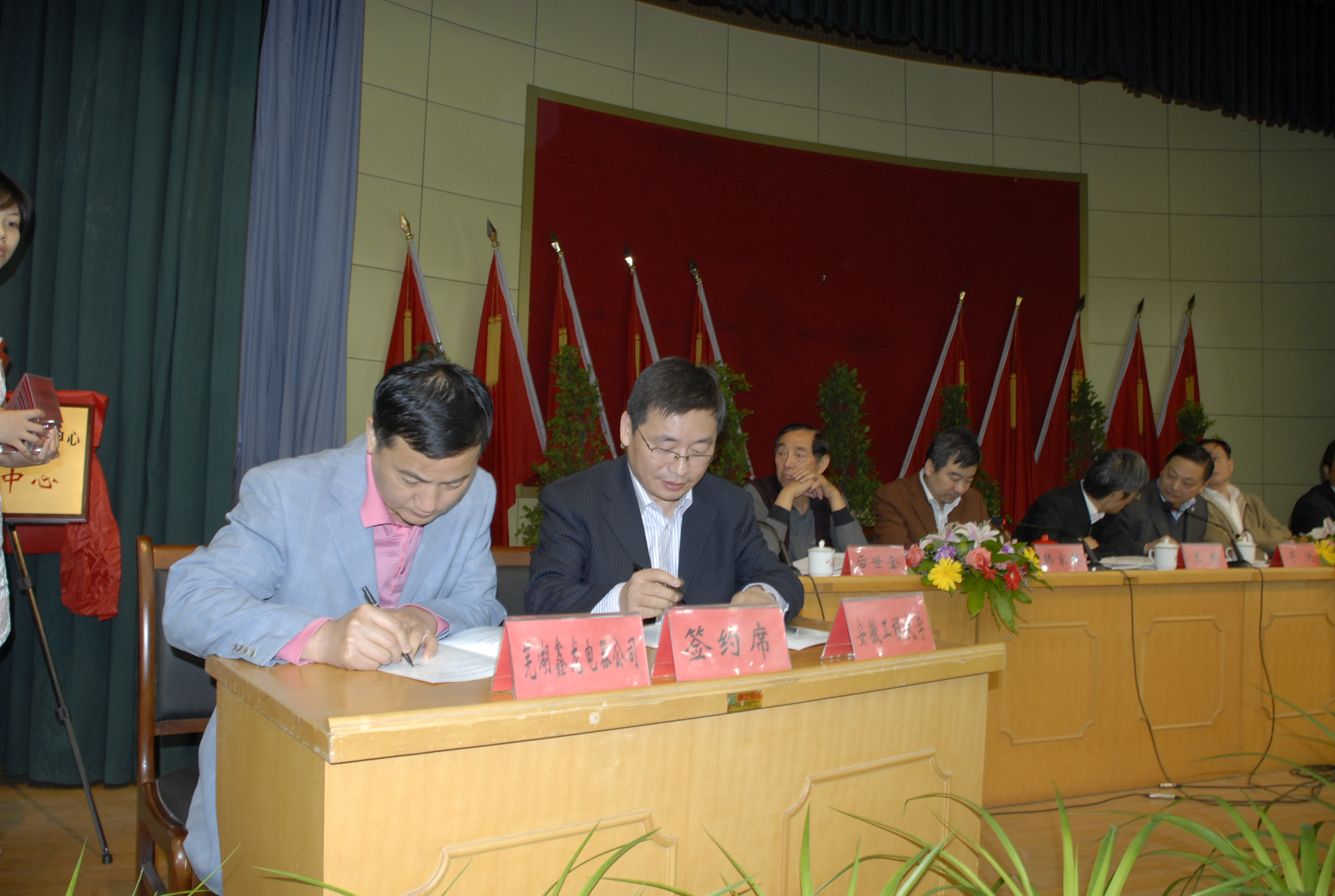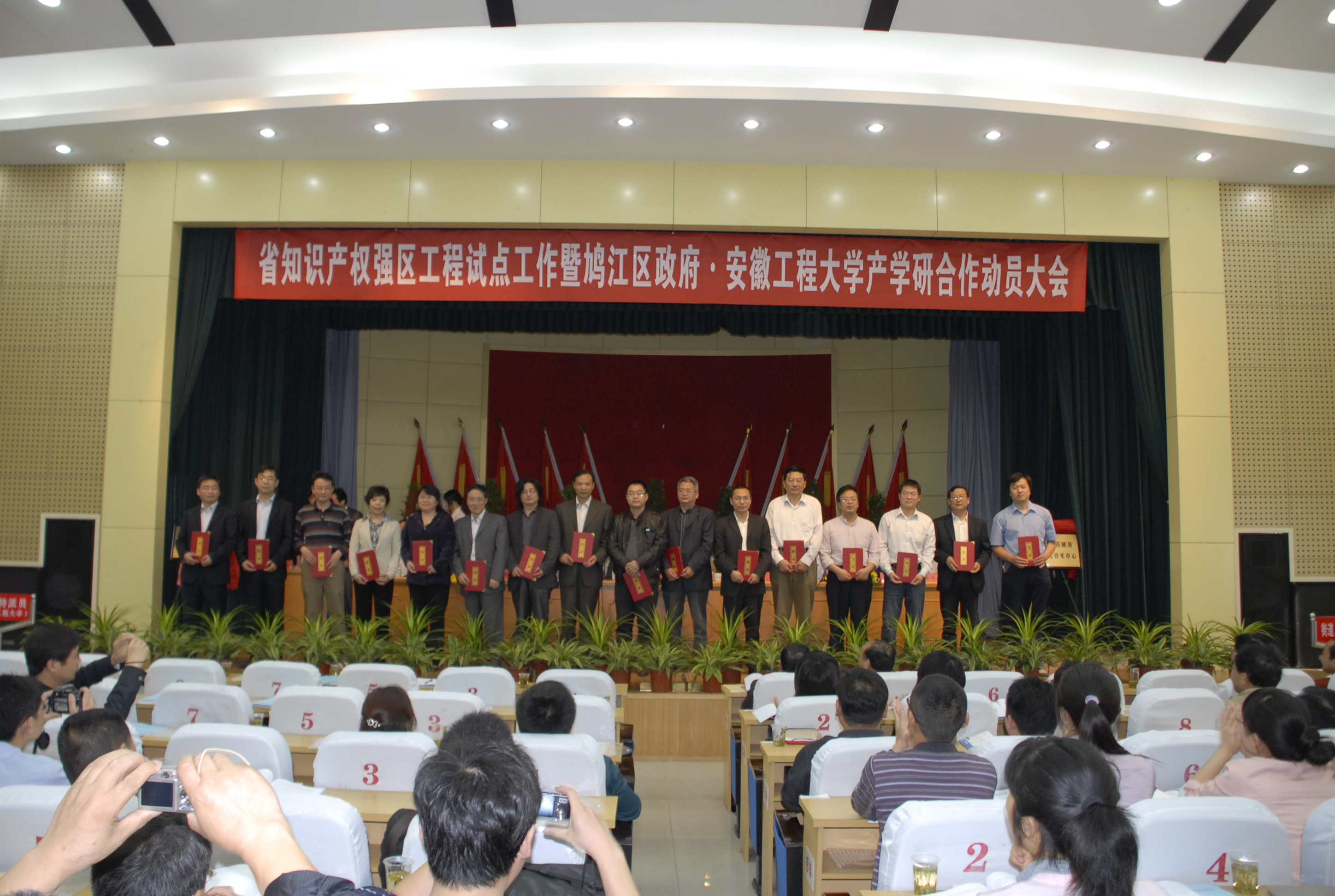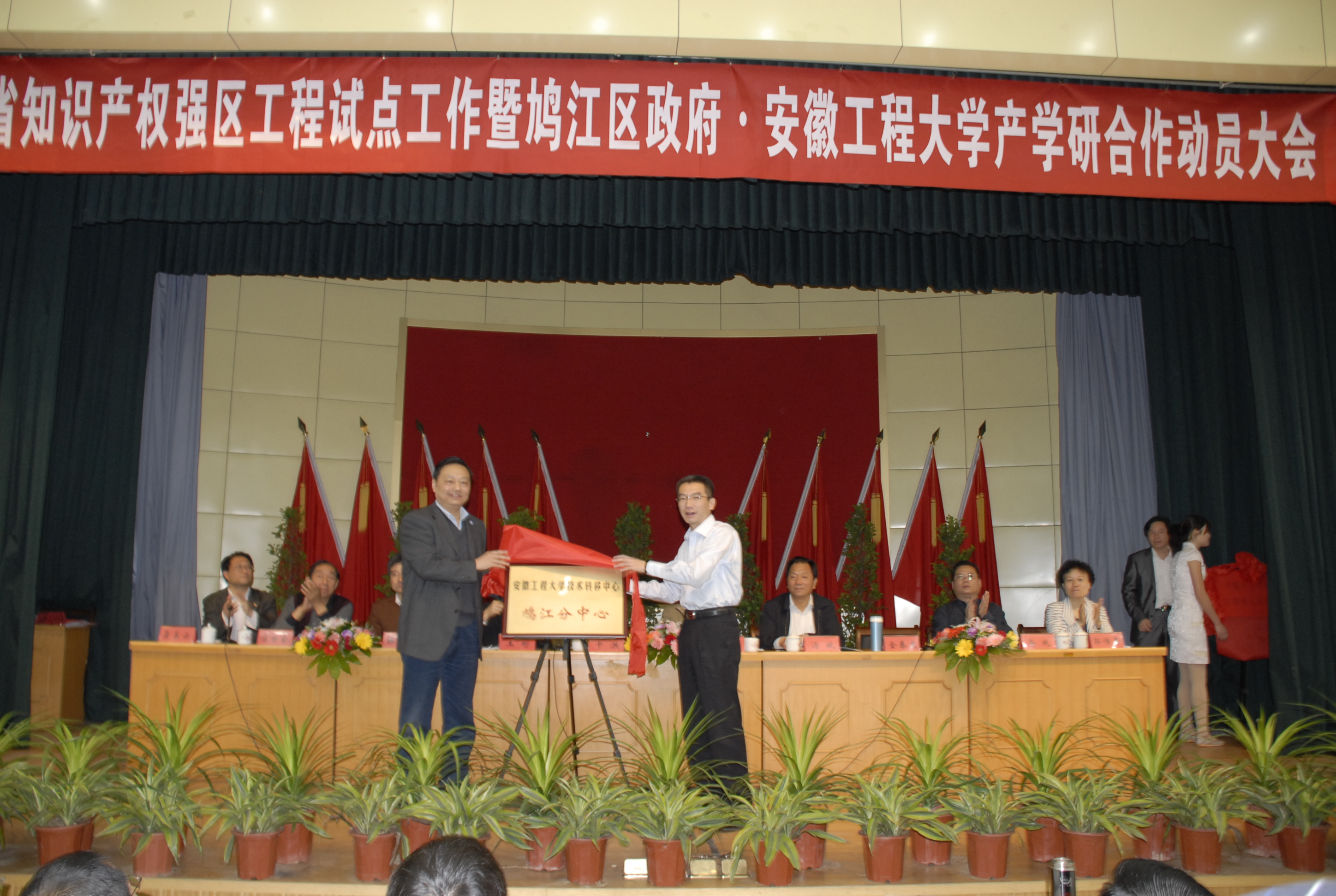 我校党委副书记、校长干洪,副校长汤斌率领相关学院院长及教授、博士参加了会议。会上举行了“RayBetApp官网下载 院技术转移中心鸠江分中心”揭牌仪式,我校19名专家教授被鸠江区政府聘为科技特派员,会上我校与安徽鑫龙电器股份有限公司、芜湖奇瑞装备有限责任公司等10家企业签订了产学研合作协议,