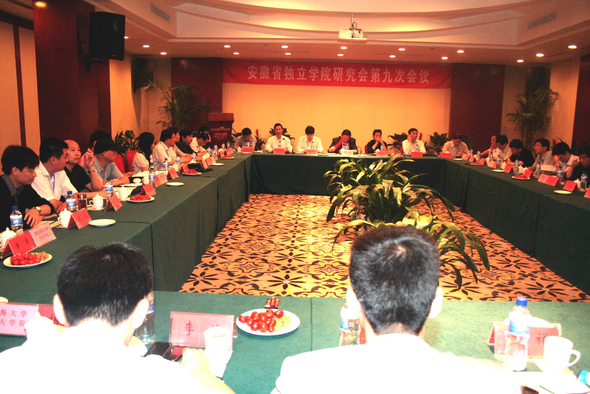 丽日高悬,暖风拂面。为进一步加强全省各独立学院之间的交流,促进我省独立学院科学发展,安徽省独立学院研究会第九次会议于5月27-29日在我校举行。来自我省11所独立学院的领导和工作人员50人来到我校参加会议。省教育厅发展规划处调研员喻远宝,全省11所独立学院的领导和工作人员,我校党政领导干洪、李震,我校独立学院董事、安徽鑫隆电气股份有限公司董事长束龙胜、副总经理张祥出席了会议;我校独立学院负责同志和工作人员参加了会议。