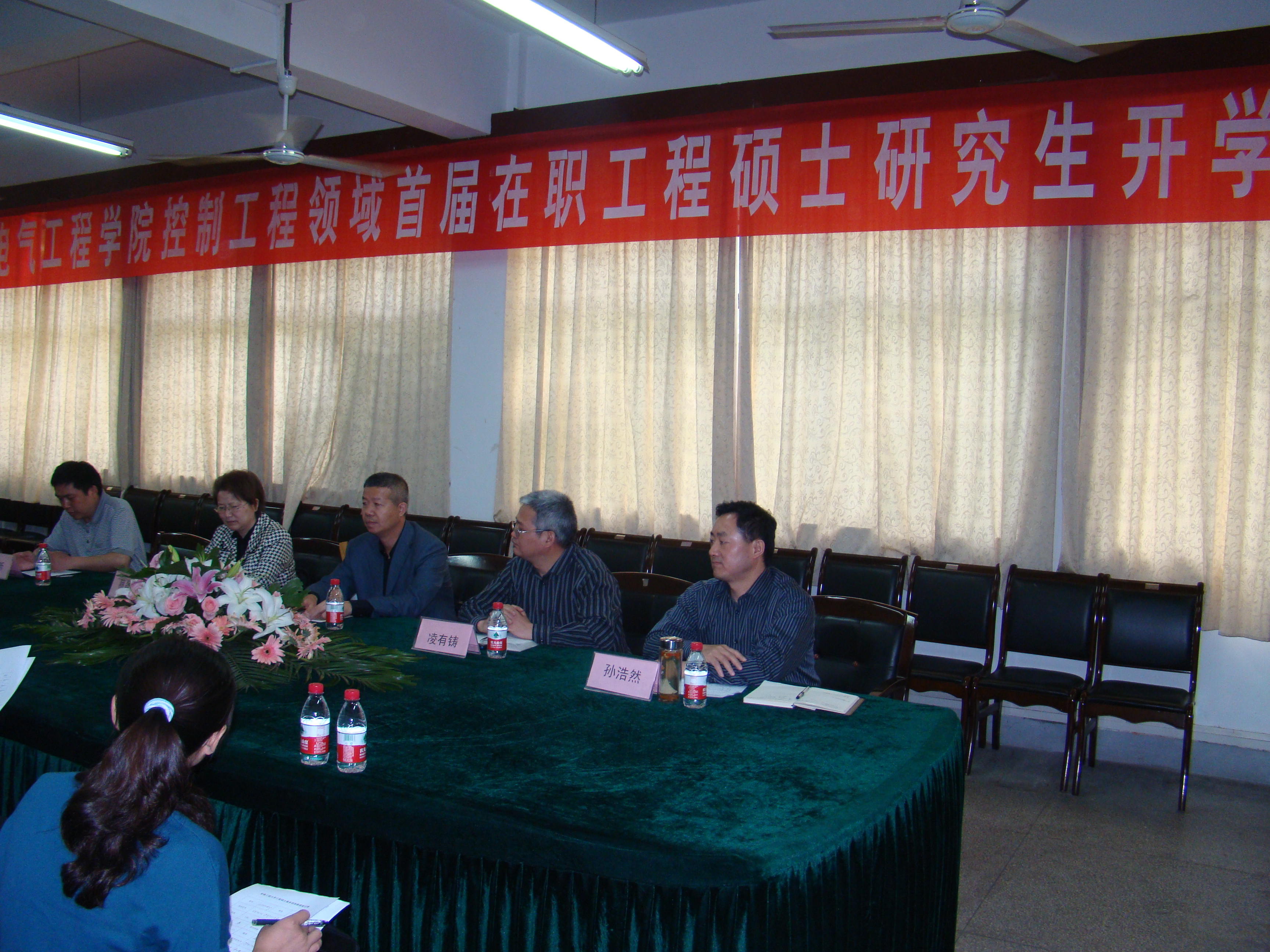 典礼上,凌有铸首先致辞,他对本届研究生同学表示了热烈的欢迎,介绍了控制工程领域研究生培养方案,同时对同学们以后的学习提出了要求和希望。随后,李小庆先生发表了热情洋溢的讲话,他说,希望同学们能够珍惜这样的学习与提高知识层次的机会,自己多刻苦些,处理好生活、工作与学习的关系,尽早实现自己的理想。蔡昌凤教授着重强调了工程硕士的培养要求,对同学们以后三年学习生活中的注意事项、时间节点等给予了详尽的指导。最后,孙浩然讲话,他首先祝贺全体同学经过辛苦的努力而成功考取我校首届工程硕士研究生,然后对同学们提出了五点要求,一是珍惜机会、潜心学习。二是创新方法、学会创造。三是注重实践、学以致用。四是积累经验,探索工程硕士培养的新道路。五是加强交流、收获友谊,并希望首届工程硕士研究生班成为每位同学职业生涯的加油站、成为企业创造的新源泉、成为学校研究生培养的新实践。最后研究生代表杨波作了表态发言。