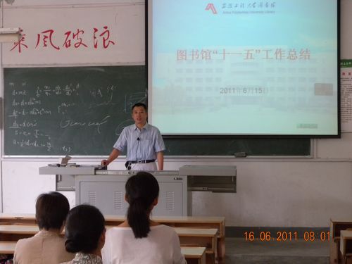 6 月16 ,图书馆召开全体馆员大会,馆长徐军向全体馆员介绍了“