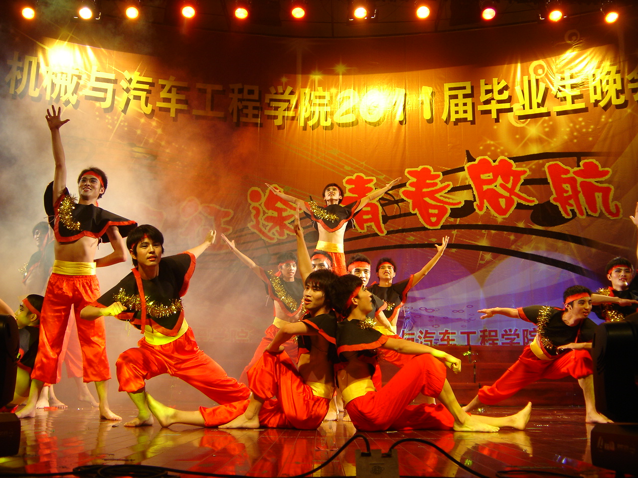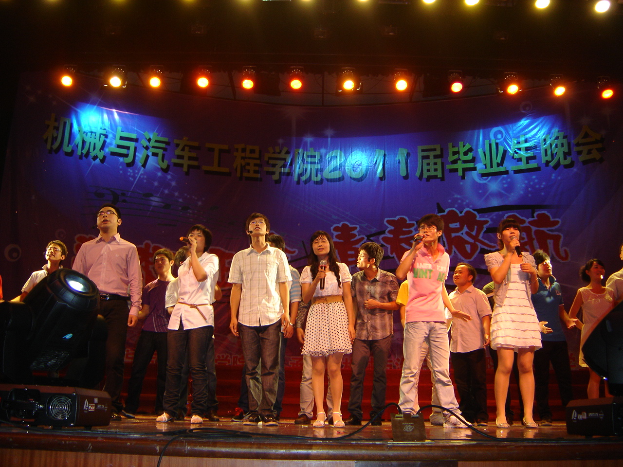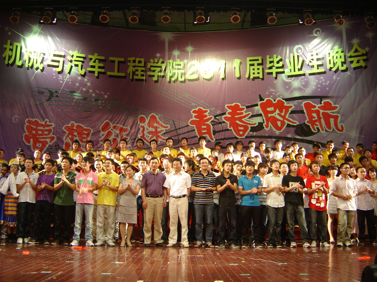 晚会在乐器合奏《天高地厚》激情四射的乐曲声中拉开序幕。首先,许德章代表学院党委、行政为即将毕业的学子致辞,他给广大同学分析了当今的社会发展,并从价值观和职业精神两个角度向毕业生提出了“你们是否充分准备好了”的问题,并希望毕业生们谨记做人胜于做事。之后的舞台剧《我的醒着的梦——80后的回忆》将在场毕业生的思绪带回了他们的小学、中学以及大学四年的点点滴滴,将那些深深镌刻在他们心中的记忆唤醒;接着附属幼儿园的小朋友们用他们可爱、天真的舞蹈《蜡笔小新》给场观众们带来无尽的欢笑;随后的《毕业之声》、《落叶归根》、《咱爷爷》等节目都以不同的方式表达出对毕业生深深的祝福;特别是由郑松庭、方维圆等毕业生代表带来的歌曲联唱,唱出了对母校的眷恋与不舍、对师长的敬意与感恩和对未来的自信与期待,将晚会的气氛推向高潮;最后晚会大合唱《走向复兴》、《二十年后再相会》中圆满落下帷幕。