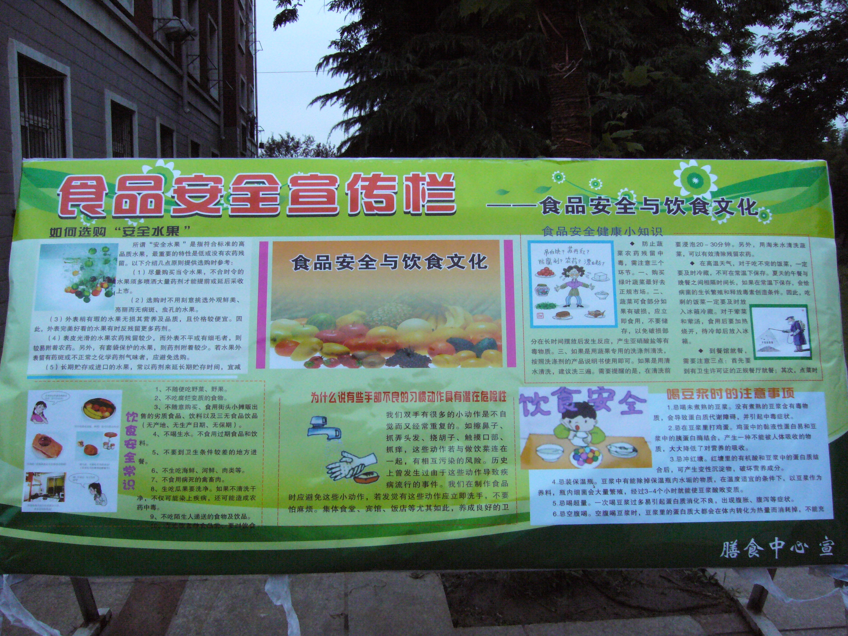 活动期间,后勤集团膳食服务中心、配送中心对各食堂工作人员的健康证、主副食品原料及供货商的有效证件进行了全面检查;总务处对食堂食品卫生安全进行了专项检查,对重点部位进行了消毒;后勤服务集团联合学生伙管会在学校食堂门前制作《中华人民共和国食品安全法》(摘录)和《食品安全知识》宣传展板,悬挂食品安全宣传条幅,吸引了同学们广泛关注,增强了广大学生对食品安全的参与意识和自我保护能力,也对学校膳食工作起到一定促进作用。