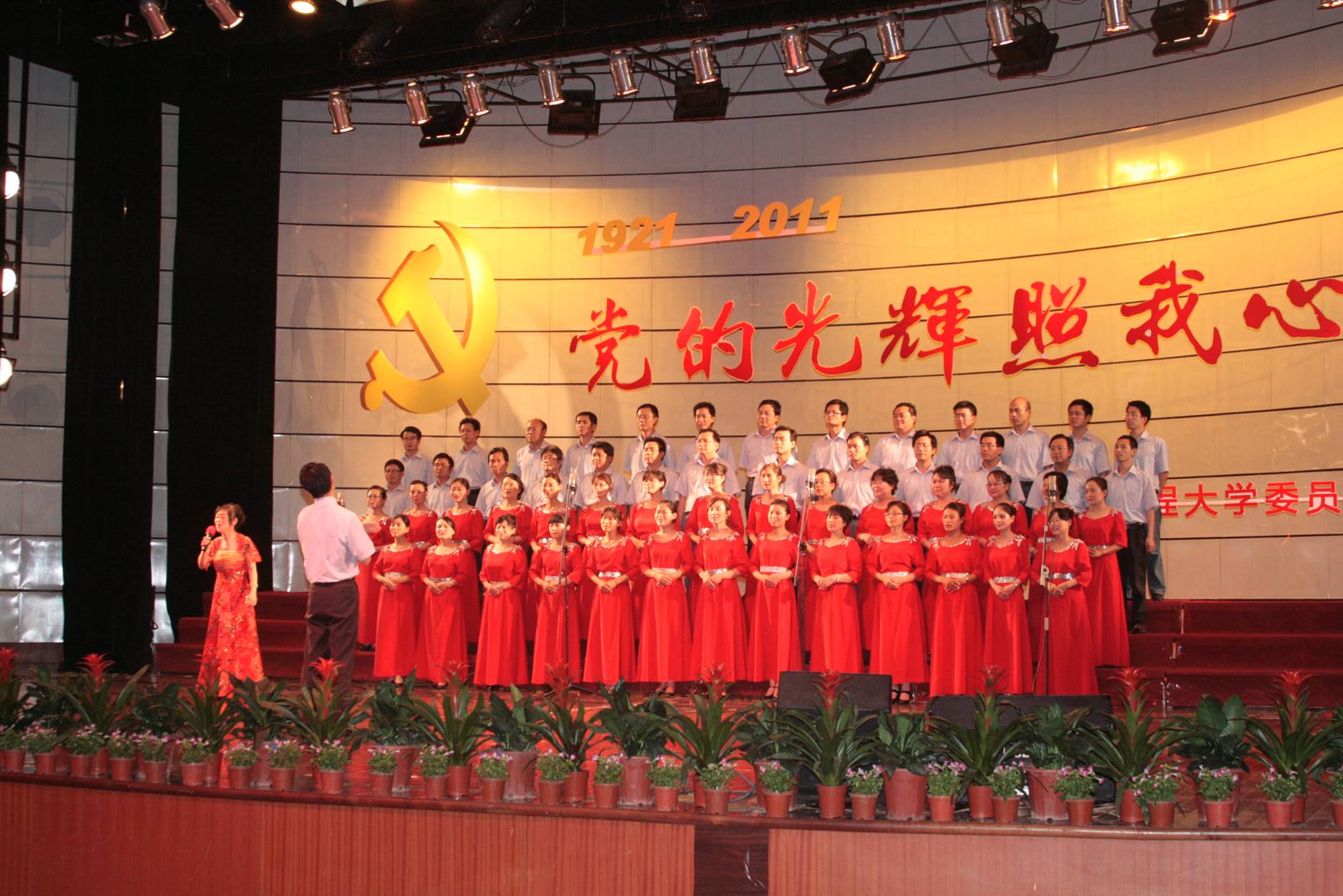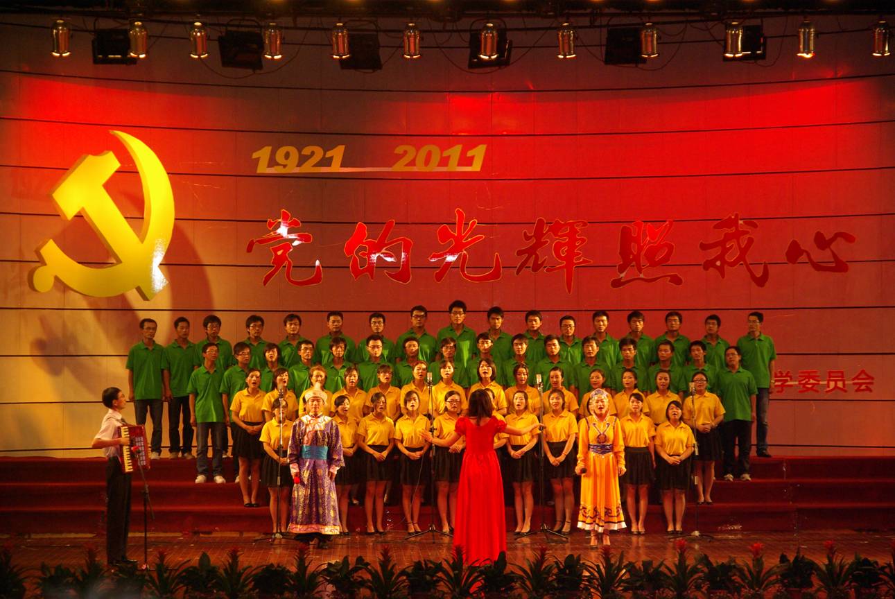 6月22日晚,校党政领导和大学生合唱团慷慨激昂演唱的《我们走在大路上》拉开了校“党的光辉照我心”——庆祝建党90周年红歌咏唱会的序幕。近一千三百余名师生齐聚校师生活动中心,引吭高歌,倾吐祝福党和祖国的心声。现场歌声嘹亮、群情振奋,充分展现了我校师生的活力与激情。